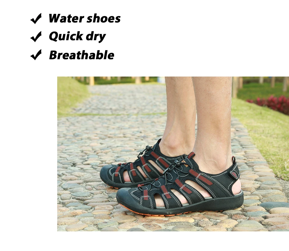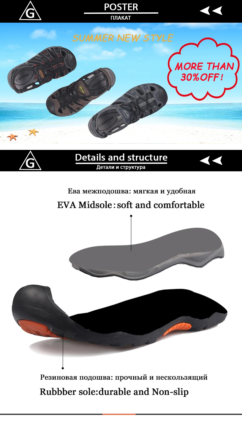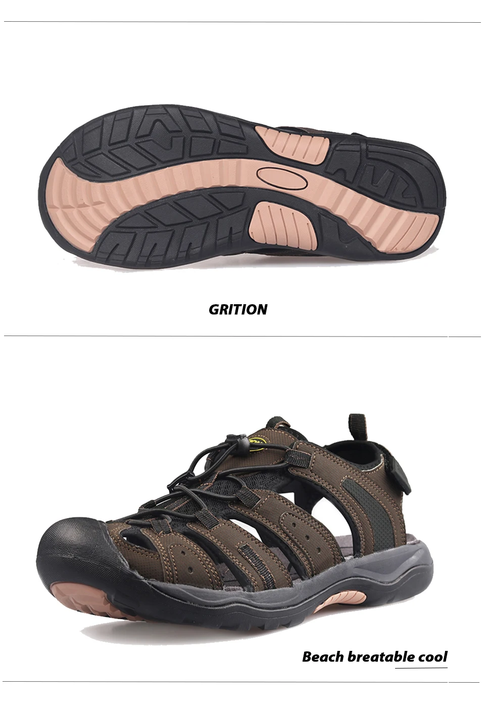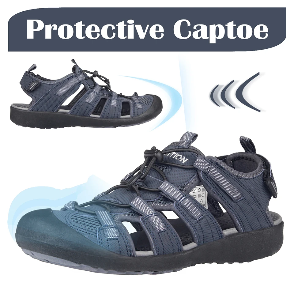 Сандалии мужские GRITION, на плоской подошве, дышащие, с закрытым носком, для пляжа, для походов, для лета, 2021