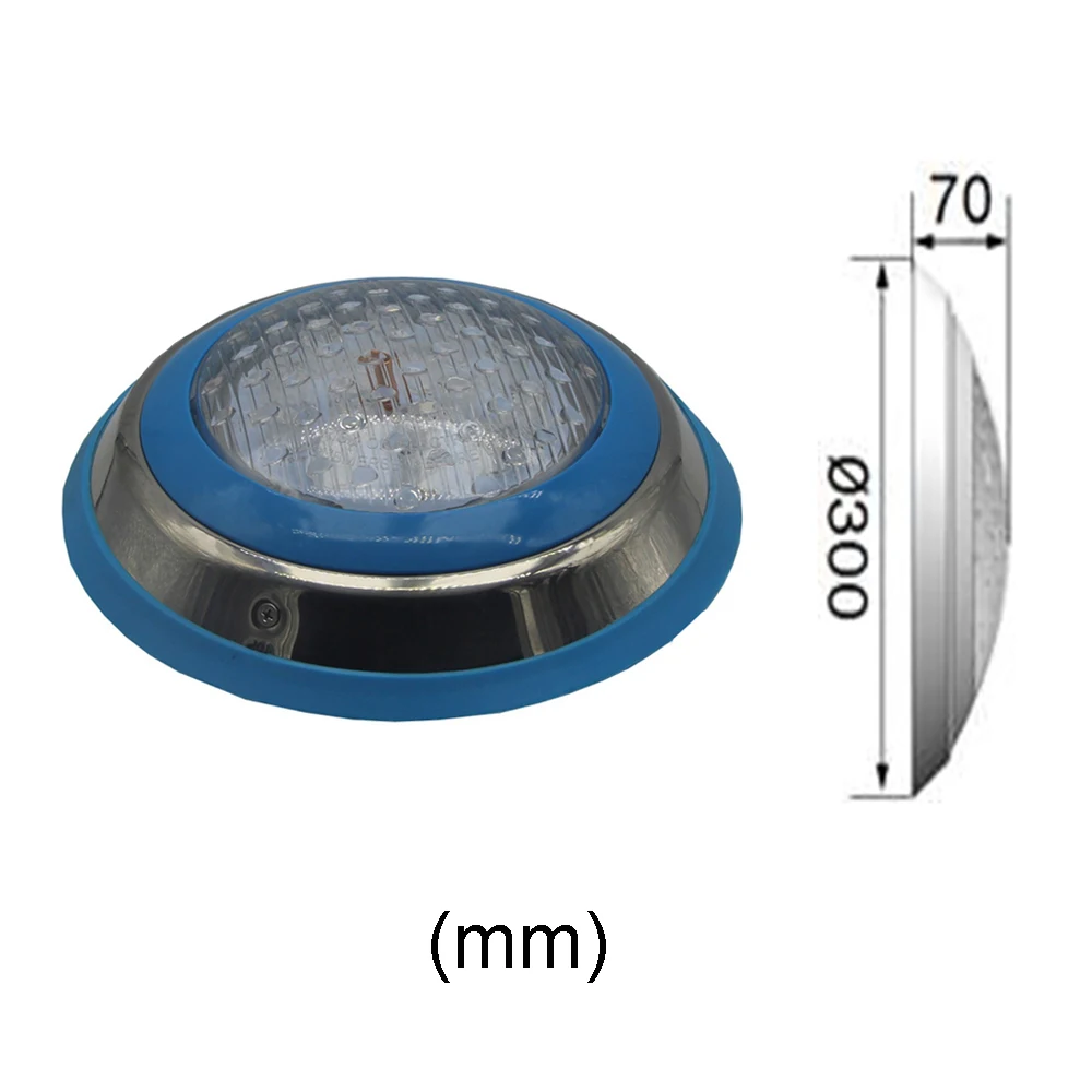 Входное напряжение: 12 В AC/DCСветодиодный бренд: SMD светодиодныйВерсии Ватт: 12 Вт/15 Вт/18 Вт/36 Вт/45 Вт/54 ВтЛюмен: 12 Вт = 1295лм, 15 Вт = 1423лм, 18 Вт = 1710лм, 36 Вт = 3040лм, 45 Вт = 3230лм, 54 Вт = 3420лмРавен галогенному ватту: 12 Вт = 130 Вт, 15 Вт = 142 Вт, 18 Вт = 171 Вт, 36 Вт = 304 Вт, 45 Вт = 323 Вт, 54 Вт = 342 ВтМатериал корпуса лампы: нержавеющая сталь + резиновое кольцо (белый или синий)Размер лампы: d300xh70ммЧастота дистанционного управления: 433 ГцАккумулятор для пульта: 12 В, 23A/27AКласс водонепроницаемости лампы: IP68 (можно положить непосредственно в воду).Длина силового кабеля: 1,5 метрГарантия: 2 годаСрок службы: 50000 часовСплошной цвет (один цвет): теплый белый (2700-3500K), чистый белый (5500-6300K), синийНесколько цветов: RGB 2 Вт с пультом дистанционного управления, RGB 4 Вт без пульта дистанционного управления
