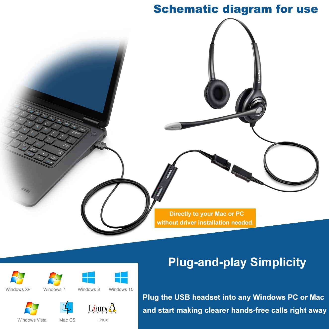 VoiceJoy колл-центр гарнитура USB разъем QD Шнур адаптер для наушни...
