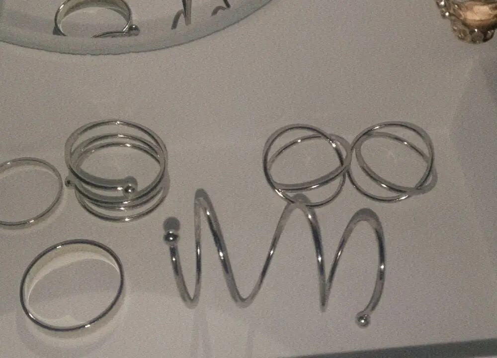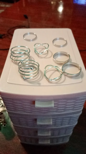 очень хороший набор колец. всего их 6 штук. 2 прожинки ( могут меняться в размере) 2 обычных / стандартных кольца ( 8 размера и 5 ) 2 сферы ( 6 размера) __ для небольшой изюминки, расправила пружинку. выглядит очень красиво.