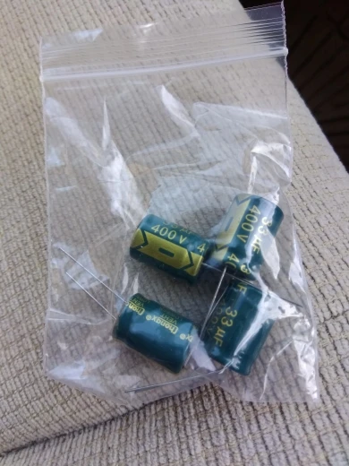 Посылка шла 70 дней. Заказывал 33х400в. по прибору - 28uf, str = 1-2 ohm