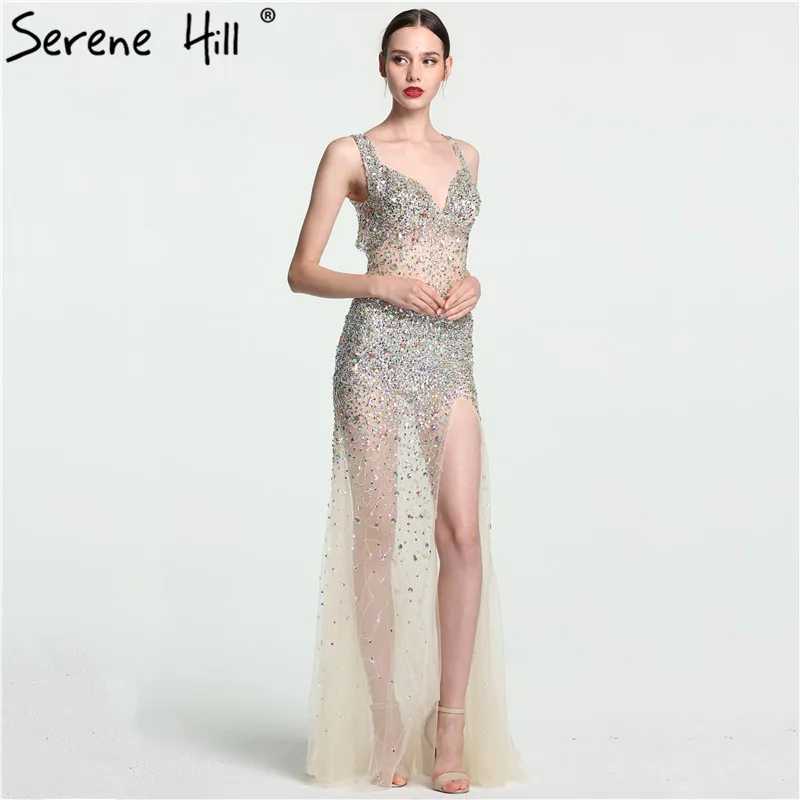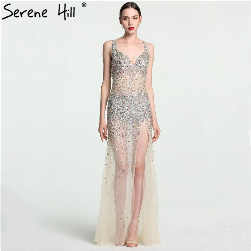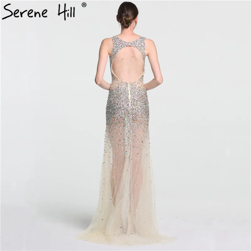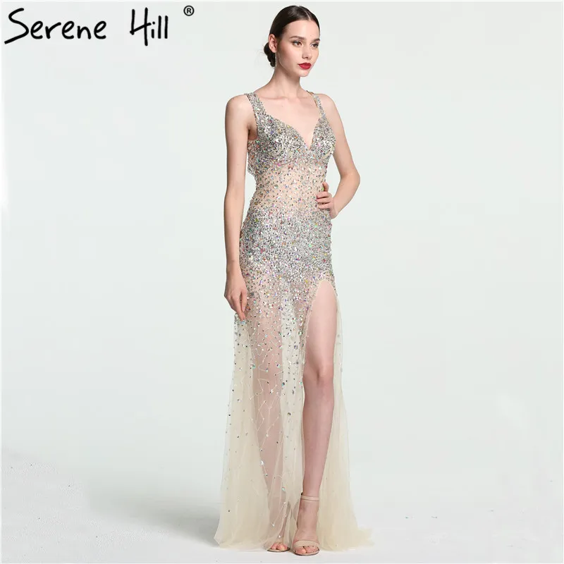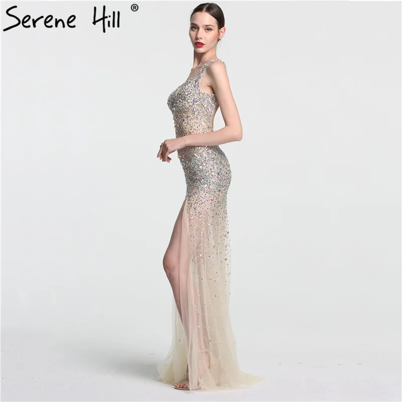 Шампанское Сексуальная Перспектива тюль Вечерние платья Длинные алмазные расшитые блестками вечерние платья 2021 Serene Hill LA6130