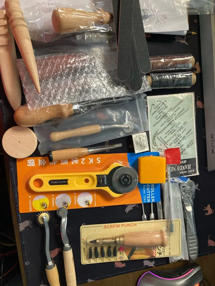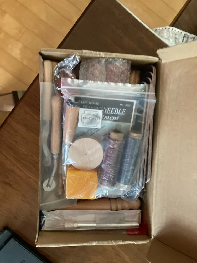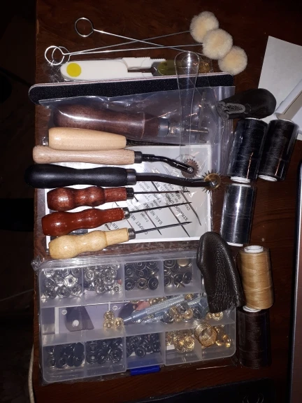 very happy with this kit! includes most of the things you need to get started on your leather craft journey! delivery took about just over a month.