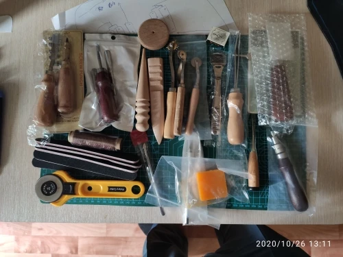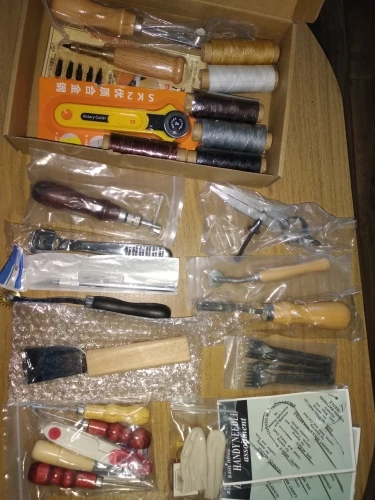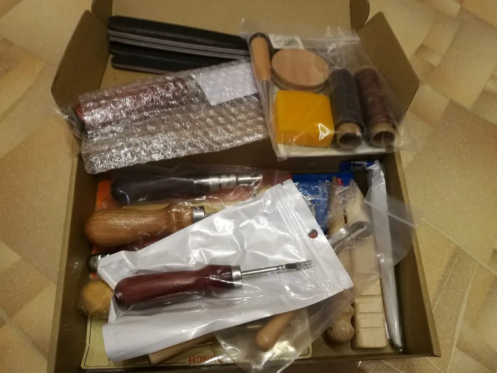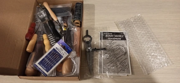 Достойный набор, для начинающих кожевенников более чем достаточно. Единственное, что мне не хватает в нём, это шаговые пробойники. Доставка невероятно быстрая - курьером в Воронеж 4 дня. Немного помялись пилки, но это вообще не критично. Однозначно рекомендую!