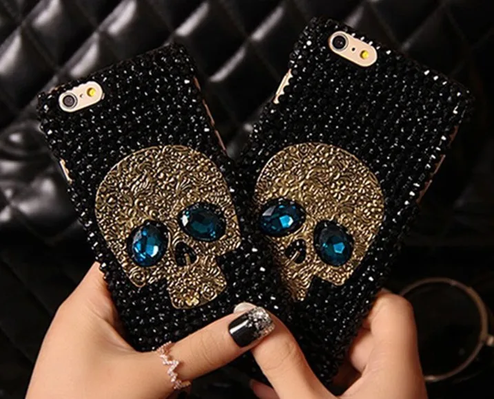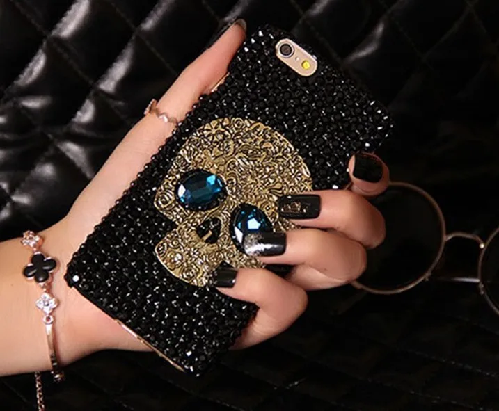 Алмазный металлический чехол saphire eye Череп для телефона IPhone 8 X XR XS Max 7 6 6S Plus 5 Samsung Galaxy Note S7 S6 Edge Plus S5 S4 S3