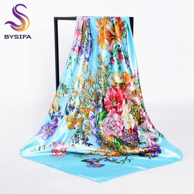 Женский шелковый шарф BYSIFA, новый дизайн 2017, атласные большие квадратные шарфы 90*90 см, индейка, женский головной шарф, шарф на шею