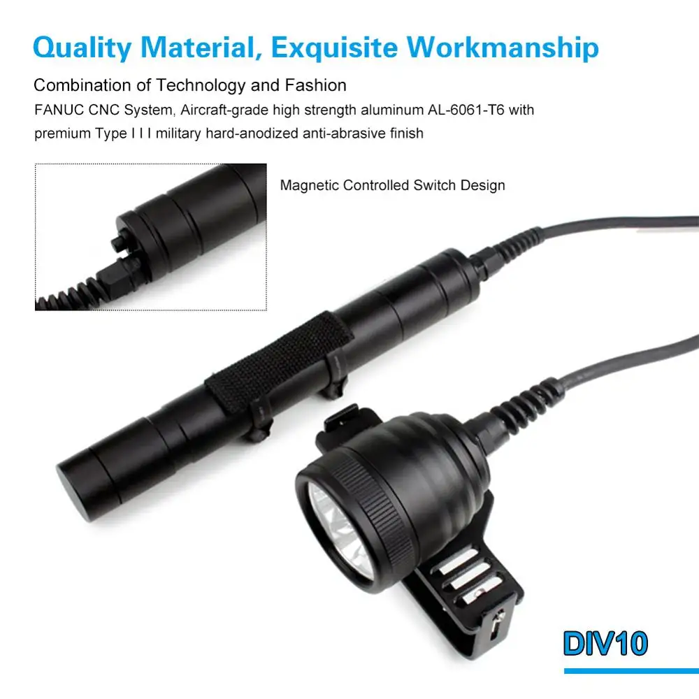 Под водой и три уплотнительных кольца хорошая уплотнительная конструкция, плюс 10 ° отличный угол фокусировки луча, это один из мощных