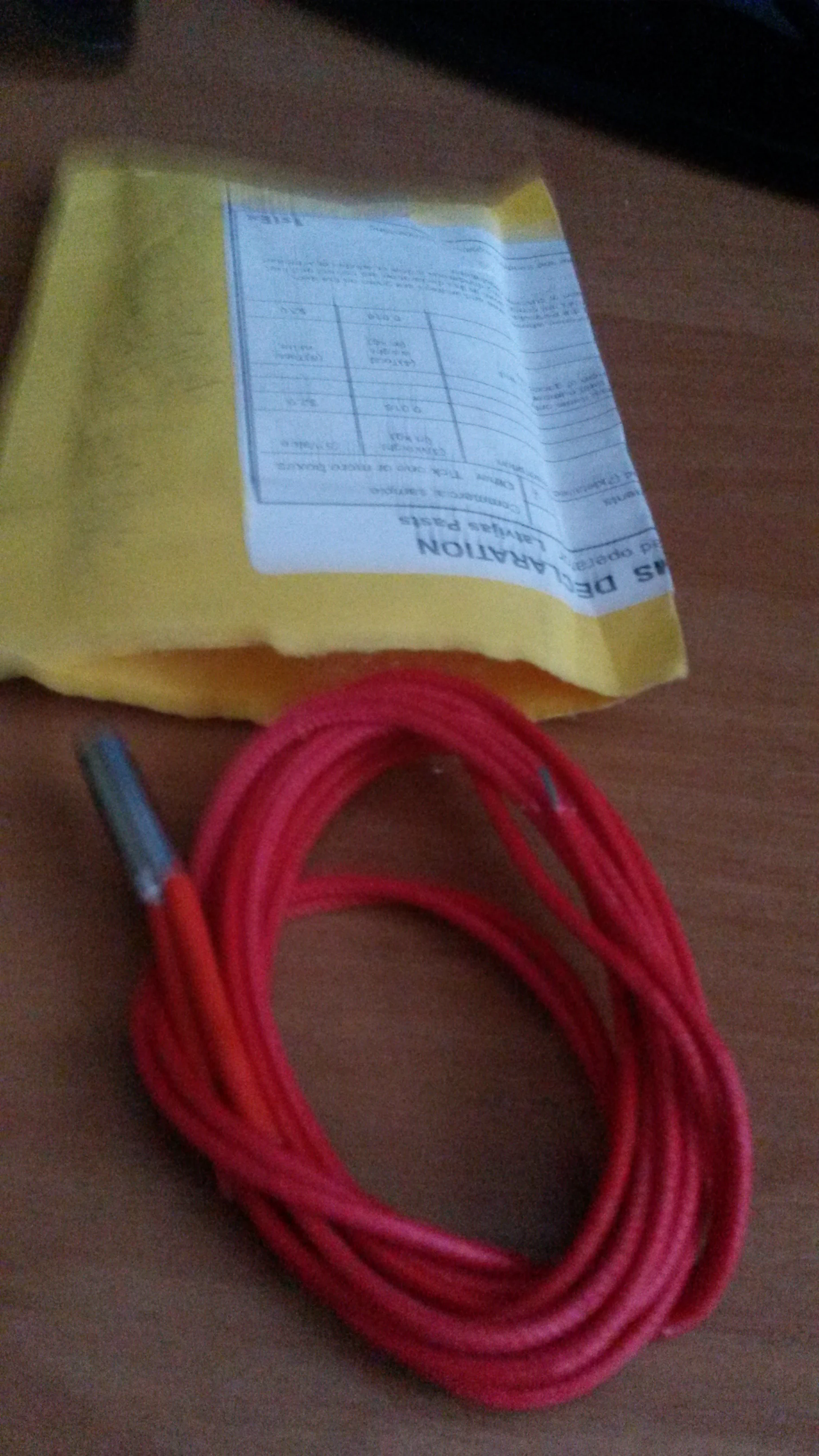 Рабочий нагреватель. Сопротивление как у всех таких же. Доставка в срок, продавец отправил товар быстро. Совет: для длительной эксплуатации замените провода сразу. Родные ломаются за 2-3 года при частой печати, а менять проводку на собранном принтере то ещё удовольствие!