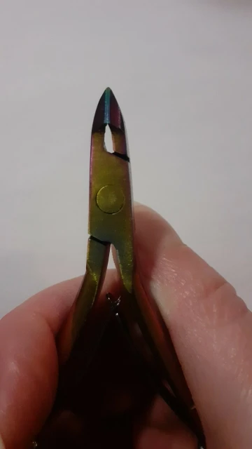 Я получил плоскогубцы, это правильный цвет, который в остальном очень красивый. У меня только один недостаток, было невозможно узнать точно размер головы зажима в мм. Внезапно он очень широкий, что означает, что вы должны быть осторожны при использовании. Будьте осторожны с ногтями, риск пореза, если у вас нет очень хорошего декситации и высокой точности, реальное мнение маникюрного эстетика более 20 лет работы. Кроме того, зажим не закрывается, система пружины посередине не блокируется, внезапно очень трудно вынуть его из корпуса и вернуть его.