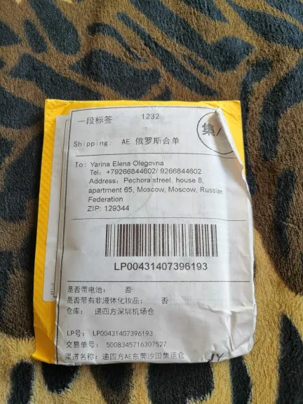 Страна: LT Color: 1pc Доставка: Cainiao Super Economy Global 09.01.2021