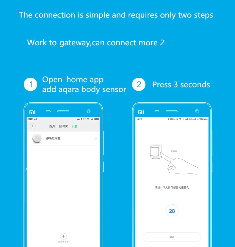 Датчик человеческого тела Aqara, шлюз интенсивности, приложение Mi ...