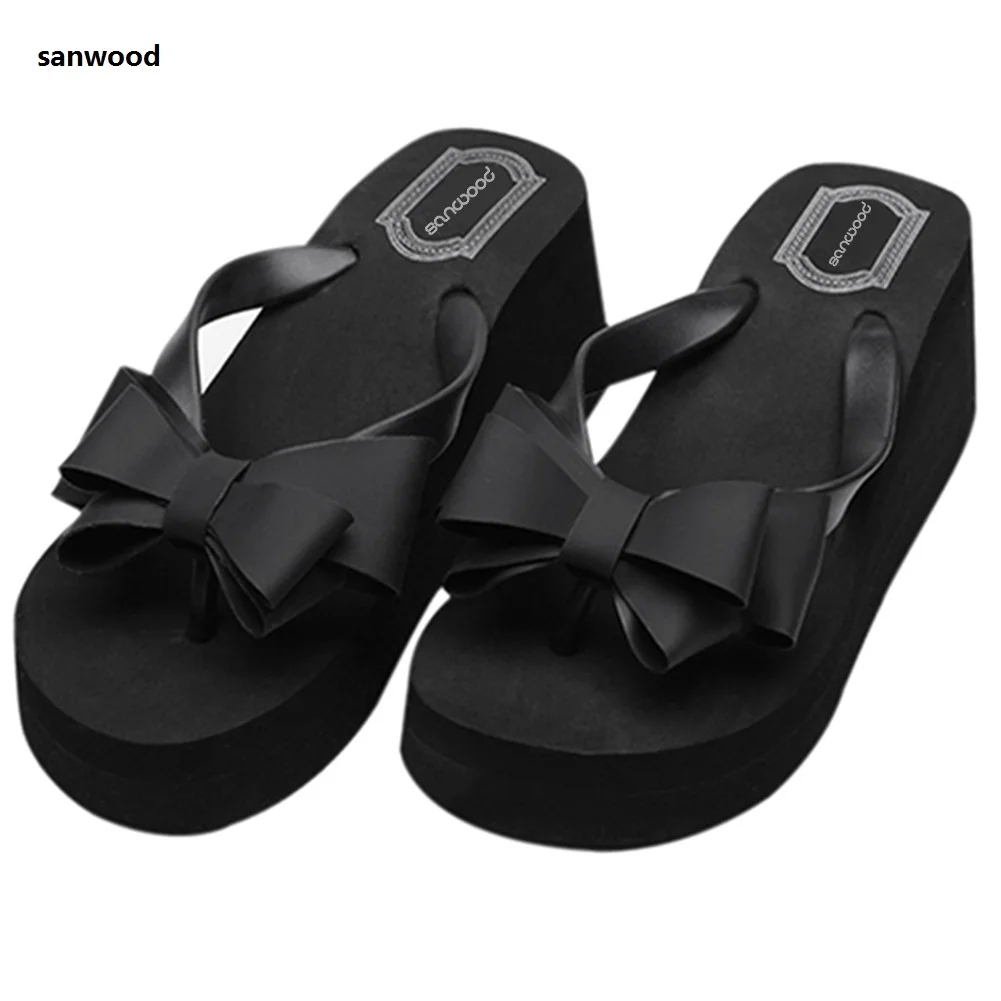 Новое поступление женские модные босоножки на платформе сандалии на платформе пляжные сандалии на среднем каблуке вьетнамки тапочки с бантом шлепанцы обувь