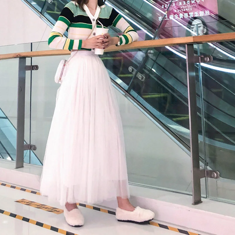 OHRYIYIE Макси Длинные Тюль Юбка Женщины 2020 Высокая Талия Бальное платье Юбки Лето Эластичный Пояс Взрослых Юбки Пачки Юп Longue Femme