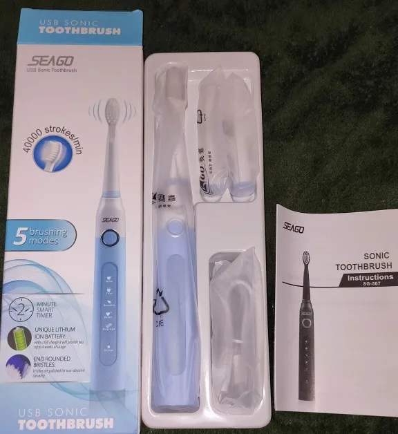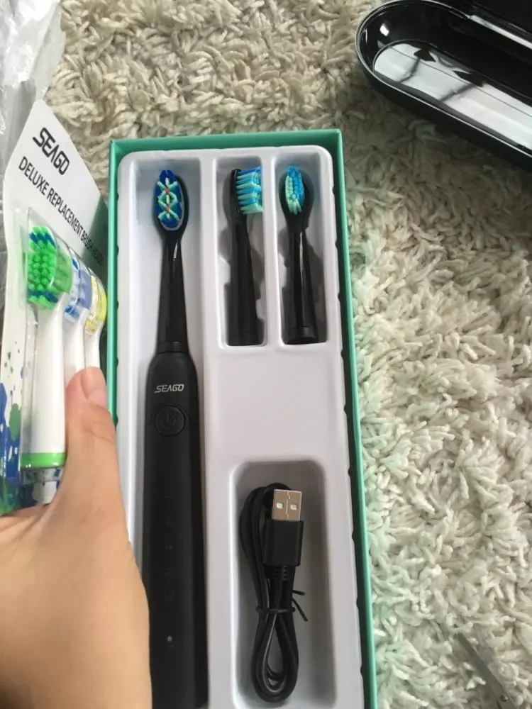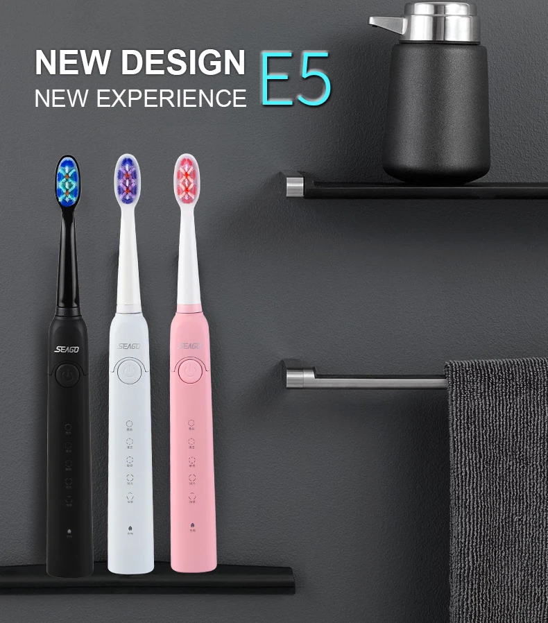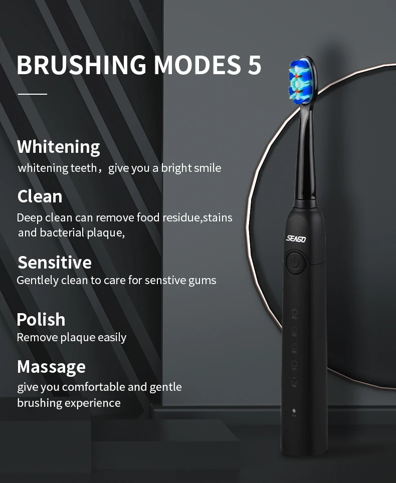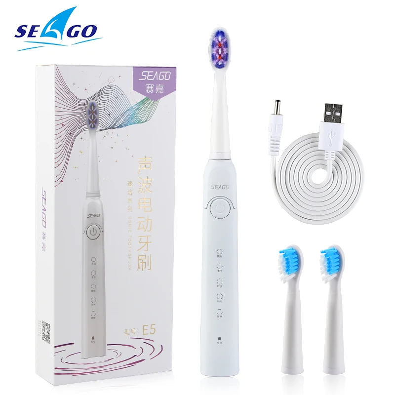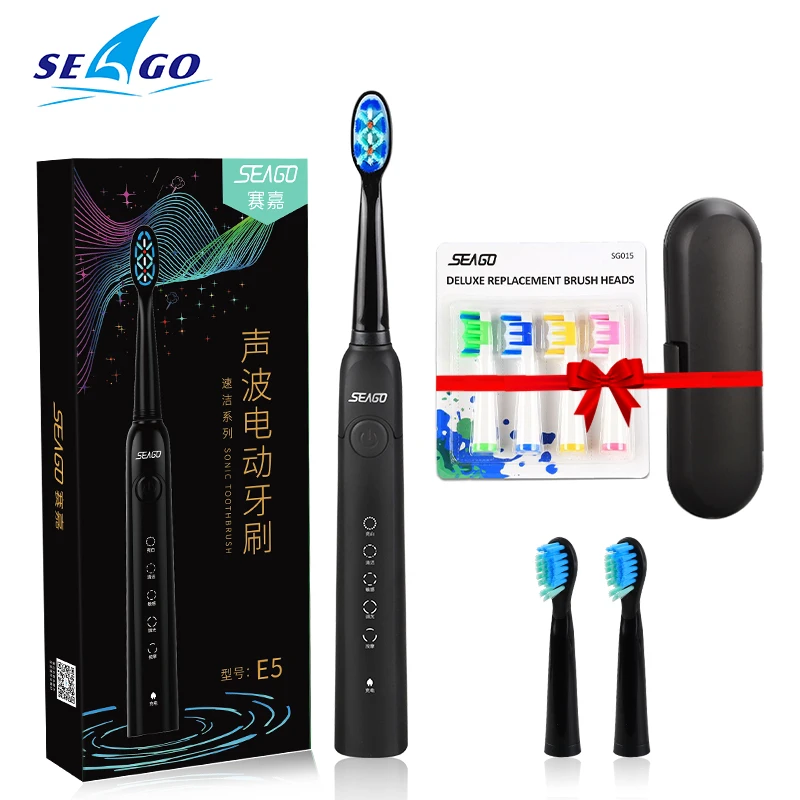 Электрическая зубная щетка Seago, перезаряжаемая звуковая зубная щетка с интеллектуальным таймером, 5 режимов, дорожная зубная щетка с 3 головками кистей