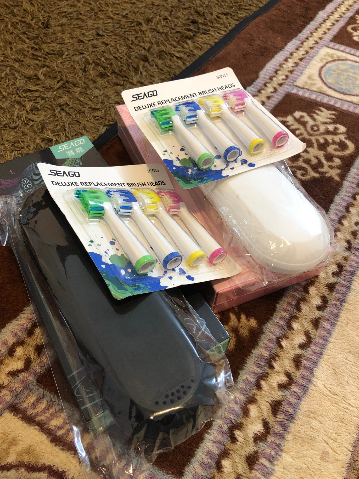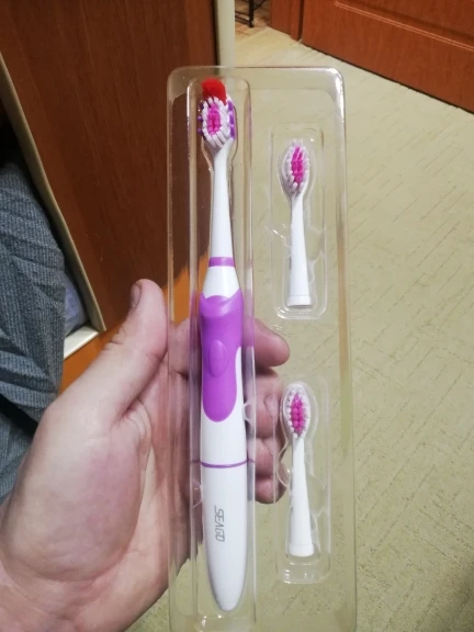 Заказываю у этого продавца в третий раз. Как всегда просто отлично. Заказывал с Москвы, посылка пришла в республику Чувашия за 7 дней. Упаковка - пупырчатый пакет, всё целое. Щётка - просто отличного качества, в наборе 2 насадки+1 насадка на щётке. На самой щётке индикаторы подписаны на китайском языке, на первых заказах не было иероглифов, но это не проблема. Чехол--чёрный пластик, смотрится отлично. В набор положили 4 насадки. Отличным подарком, а также приятной новостью, для меня стал подарок от продавца. Спасибо ему за это. Продавец- отличный, посылку отправил быстро. На связь выходит, на вопросы отвечает. Так что этого продавца я рекомендую.
