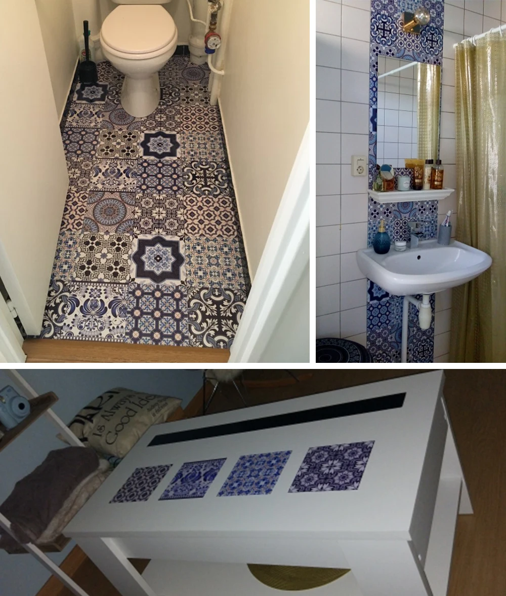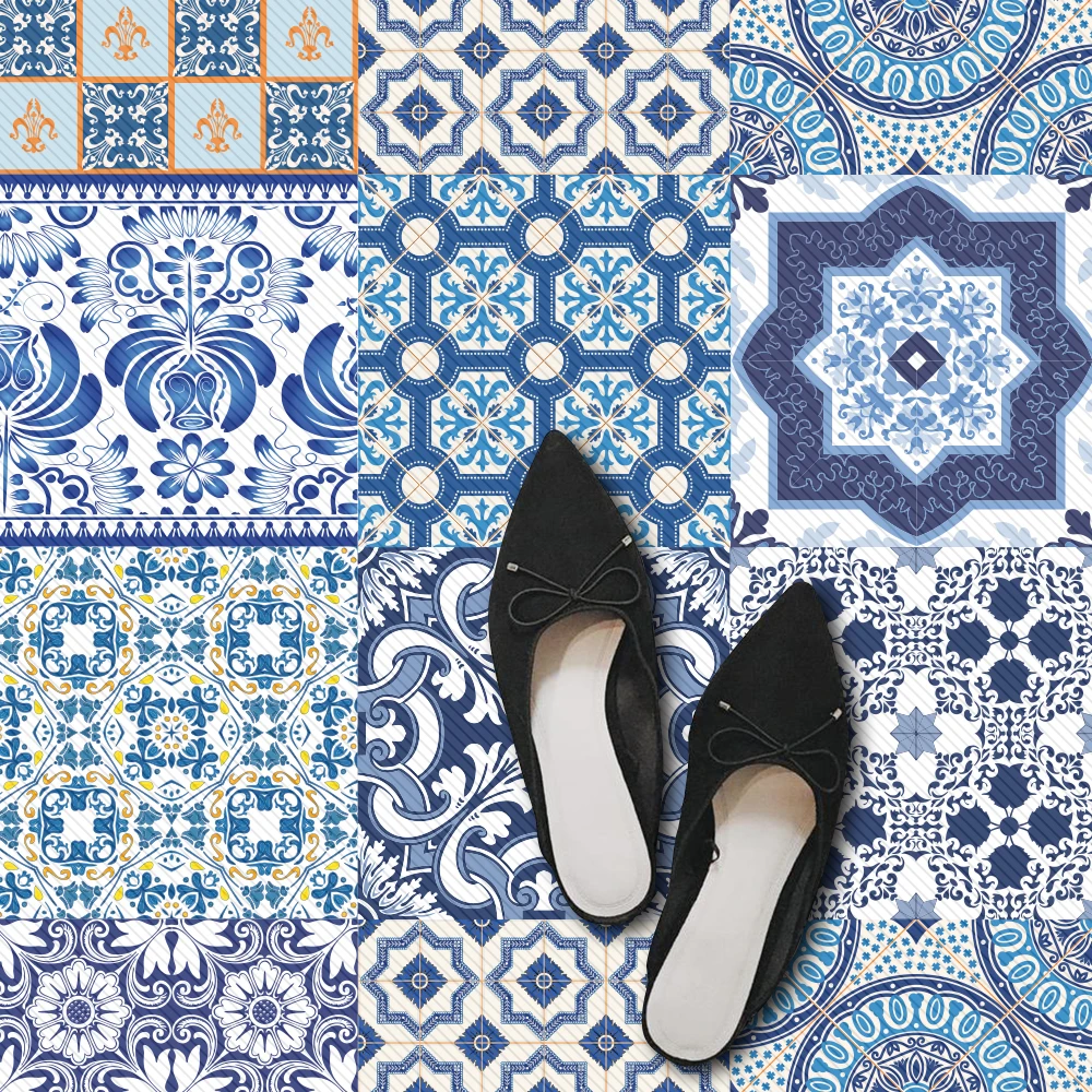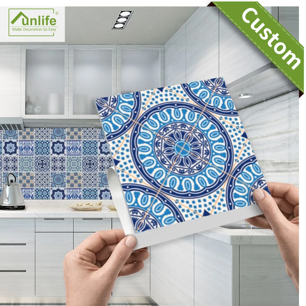 Самоклеящиеся сине-белые наклейки на фарфоровую плитку, 10 шт.