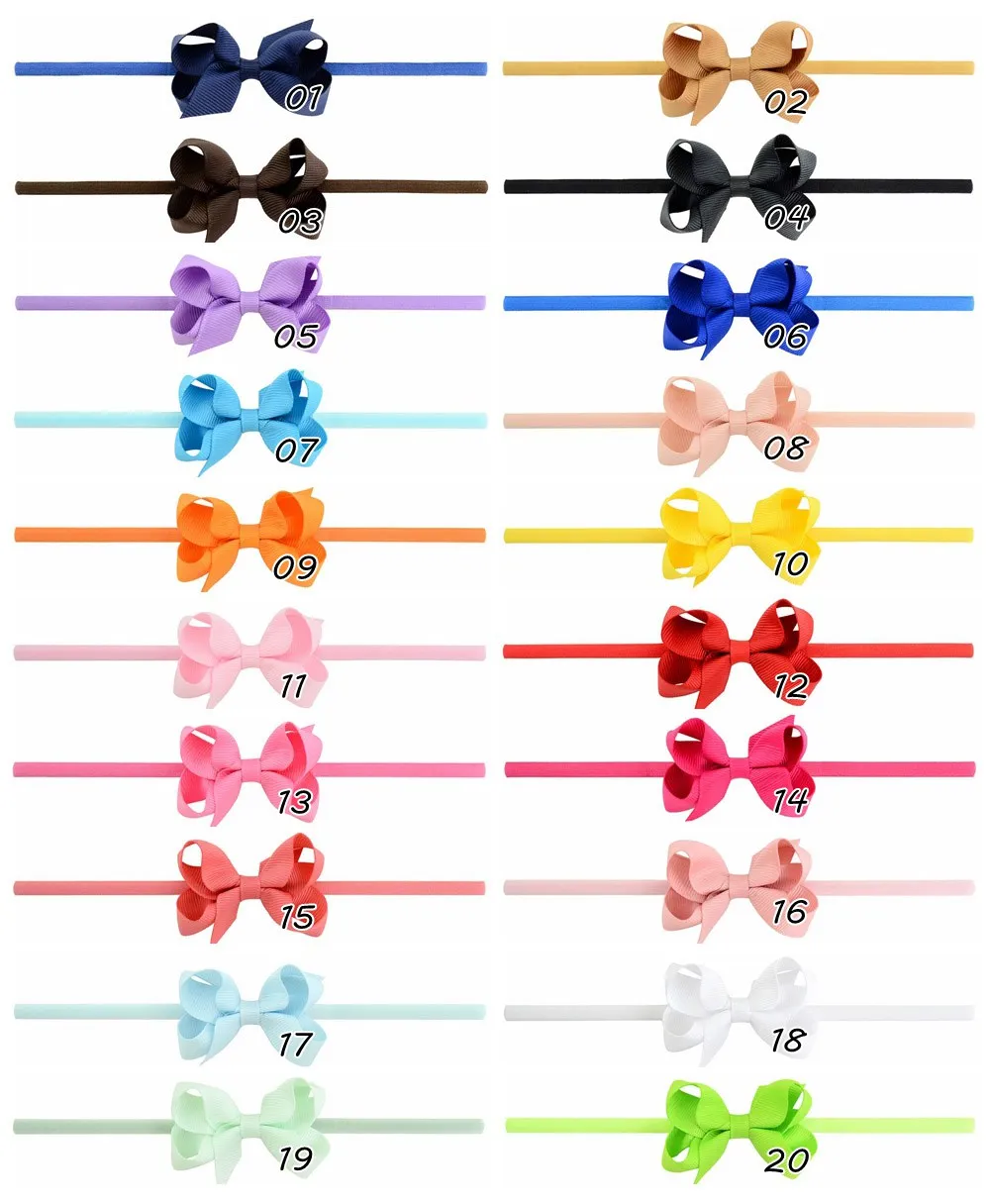 20 шт.лот маленький однотонный бант повязка на голову бант лента бант эластичные повязки для волос аксессуары для волос 725