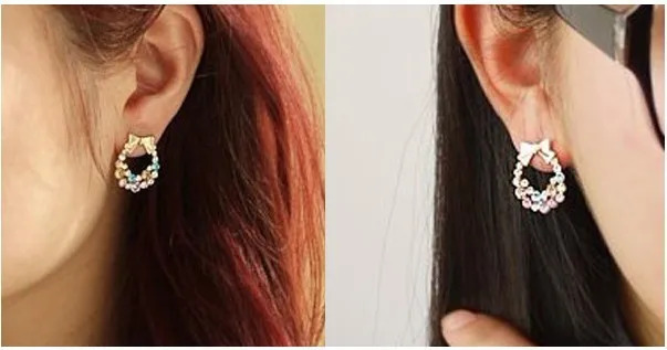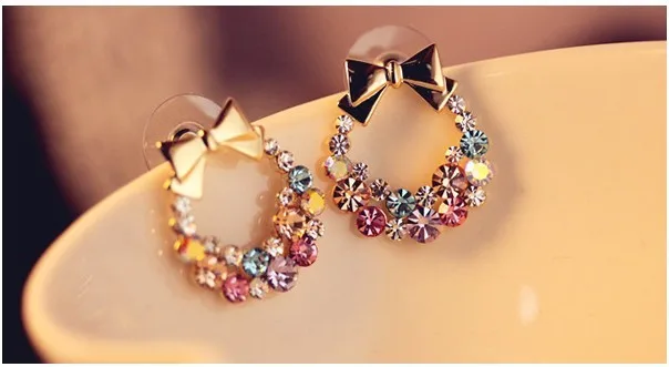 Новинка; Лидер продаж; Качественные ювелирные изделия, Золотая Стразы с разноцветными цветами ослепительно cz бантом, серьги со шпилькой, для женщин, 2 вида подарки
