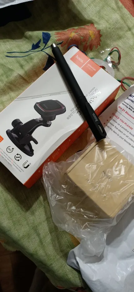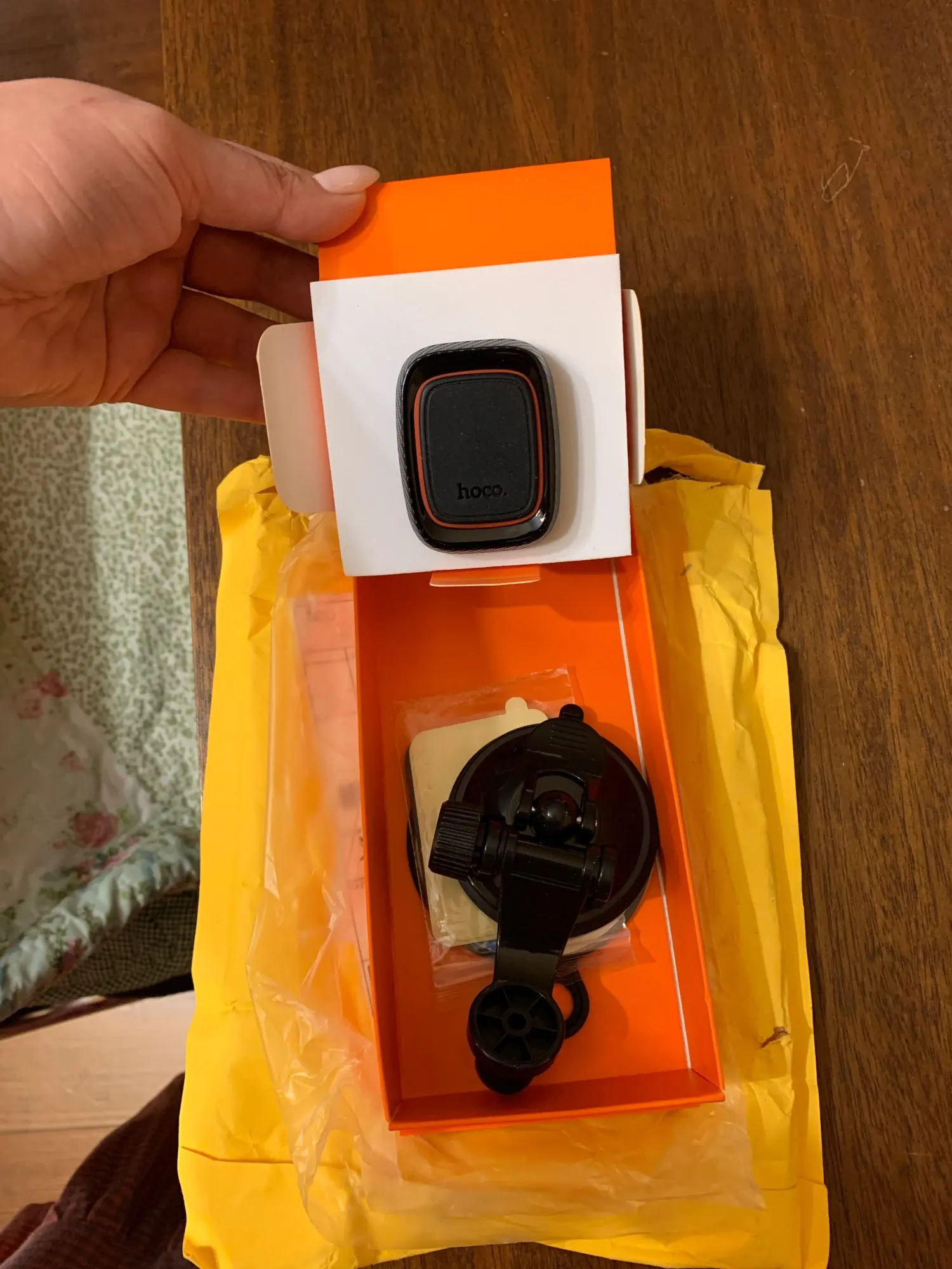 Замовлення йшло більше двох місяців. Трек номер зовсім не відслідковувався. Тримач нібито не поганий, магніт тримає добре навіть через селіконовий бампер. В наборі дві металеві пластини, ще дві запасних клейких плівки, в наборі кругла основа на торпеду з двостороннім скотчем. Пластик виглядає крихким. Продавець в подарунок поклав дисконт на 1$.