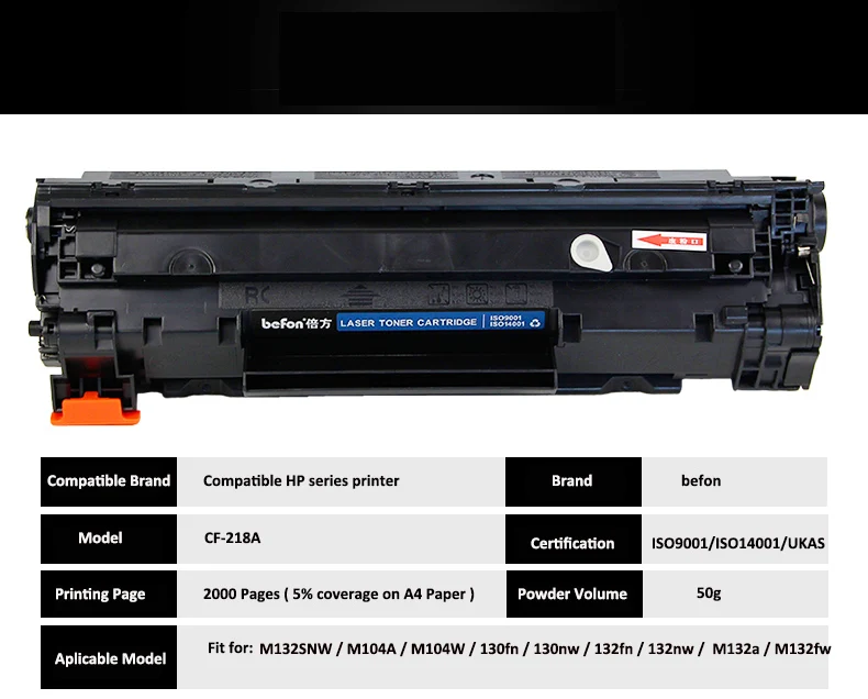 Сменный картридж для HP CF218A, CF218 218 LaserJet Pro M104a M104w 104 132 132a M132fn M132fp