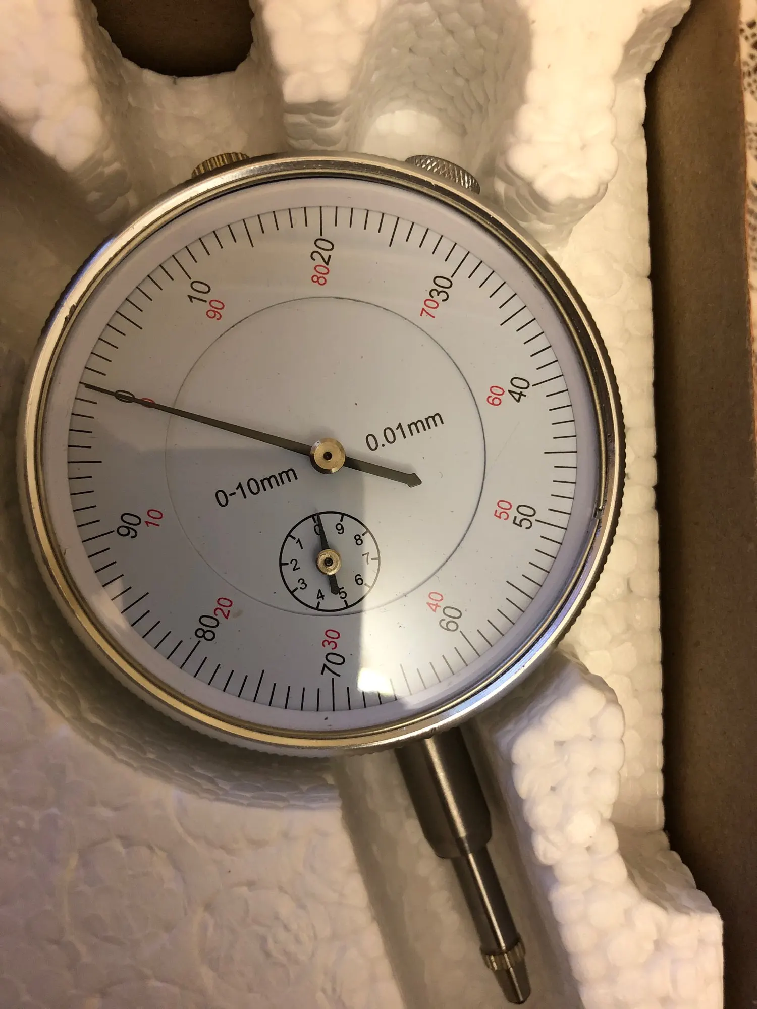 Более дешовая версия советского индикатора (всё-таки тот на голову лучше). Сделано хлипче (в механизме применяется штамповка, шток имеет незначительный люфт), но для домашнего применения вполне подходит.