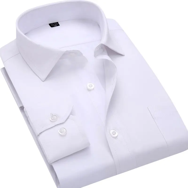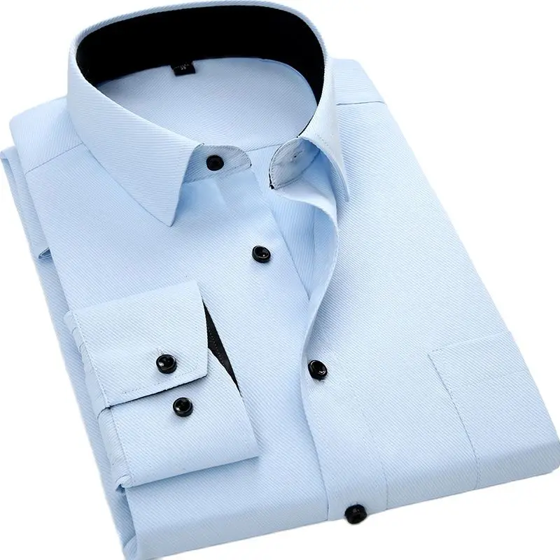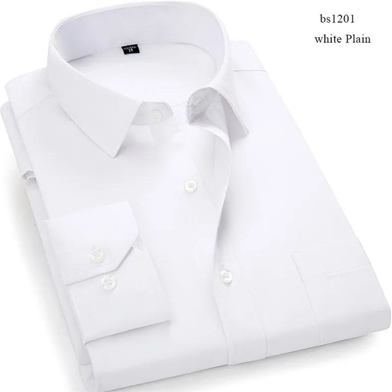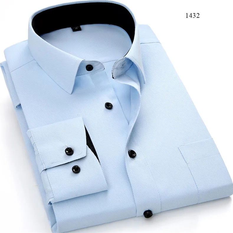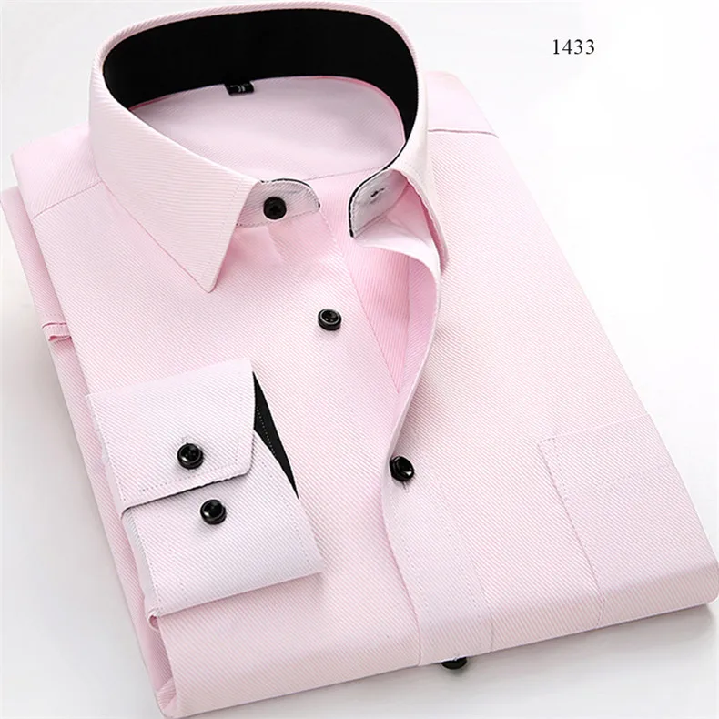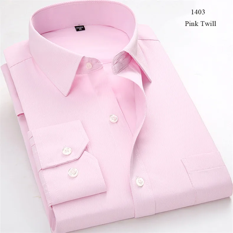 Мужская Однотонная рубашка с длинными рукавами, Классическая формальная деловая рубашка в полоску, простая в уходе, из Твила, Осень-зима 2019