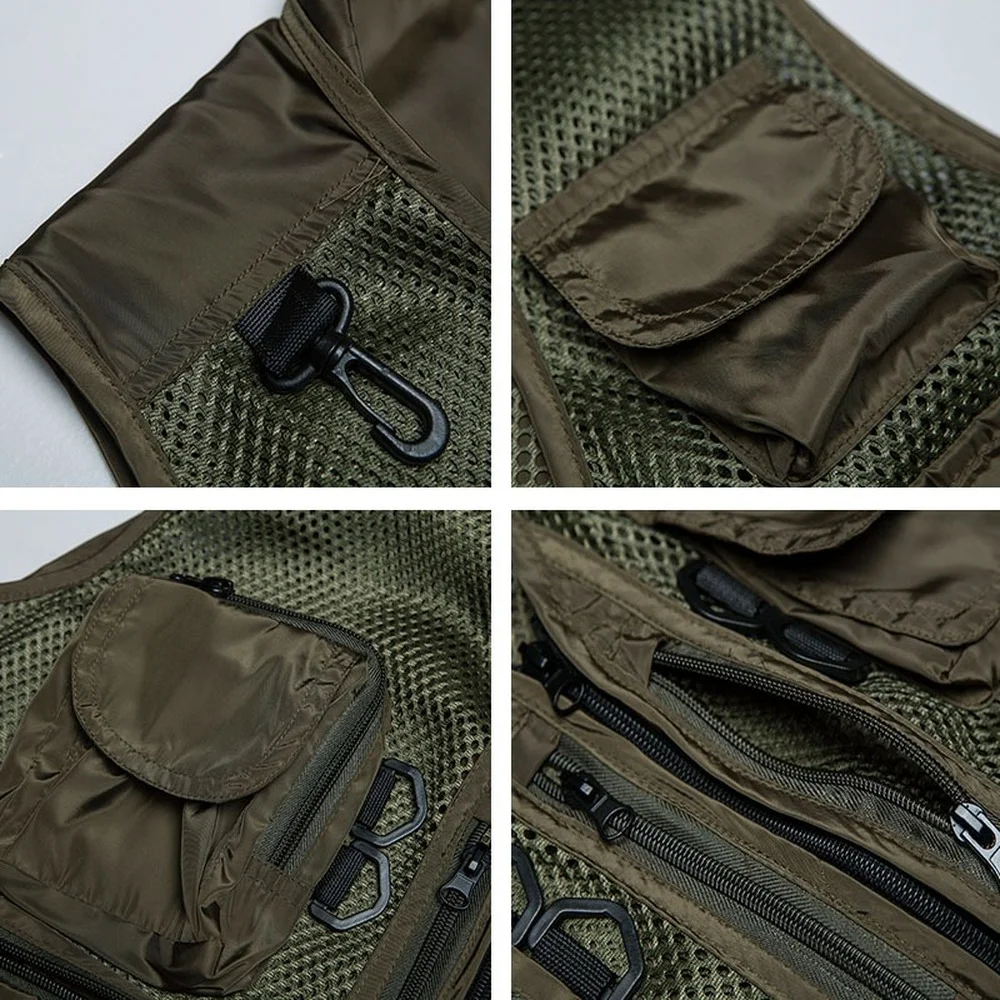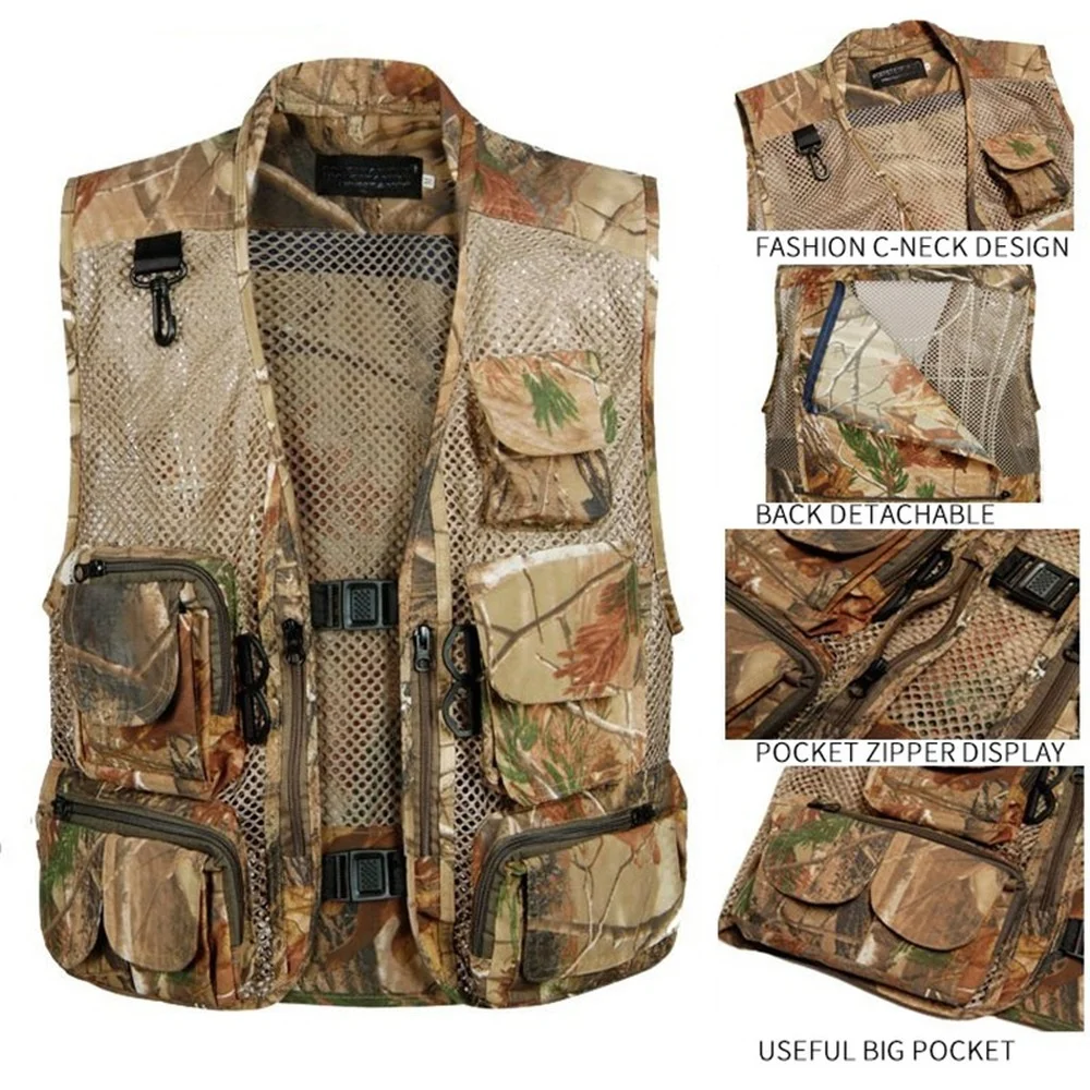 Жилет мужской мешковатый повседневный, сетчатая безрукавка со множеством карманов для фотографов, газовая зеленая камуфляжная безрукавка, на лето