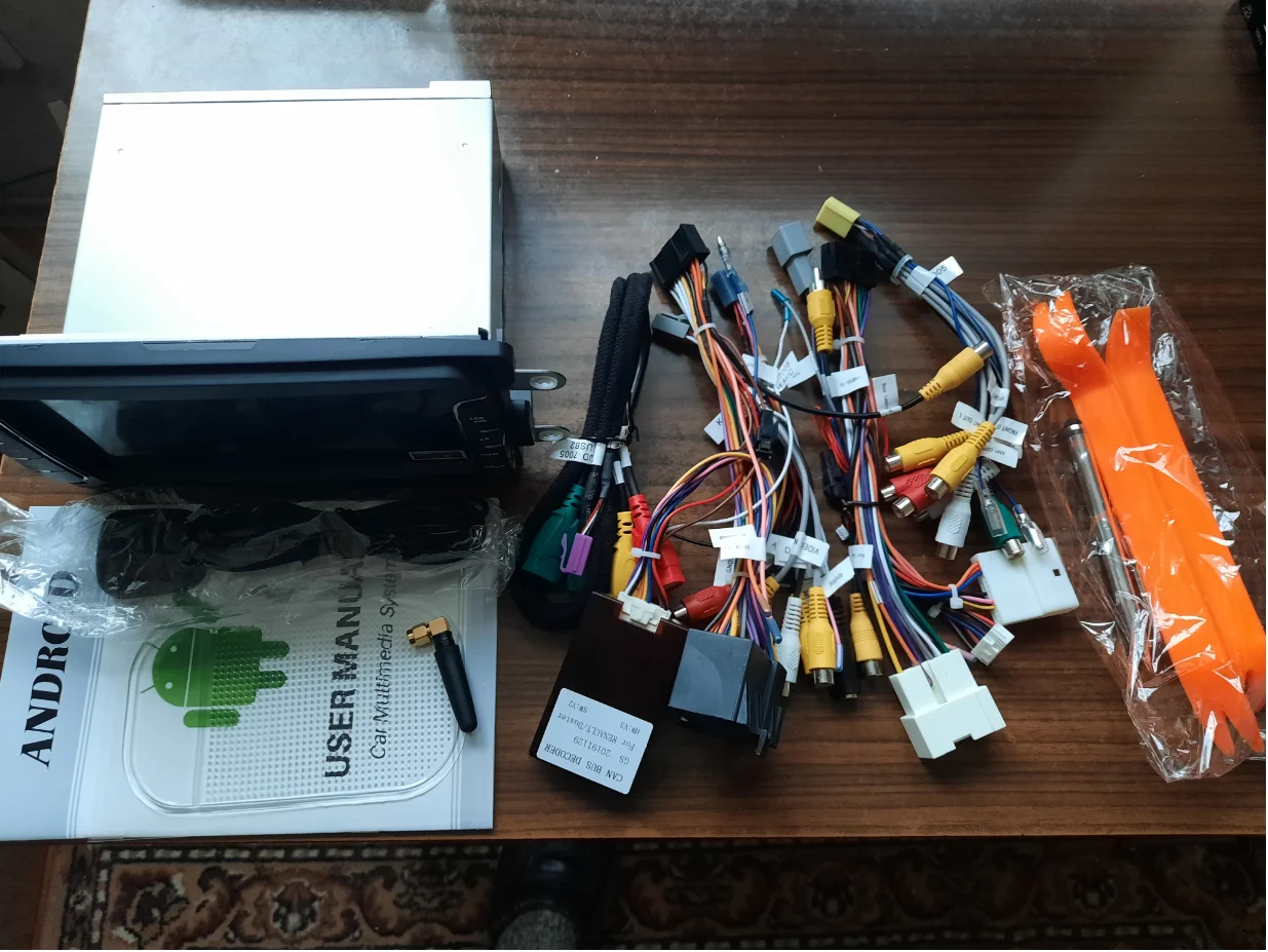 Быстро доставили, звук на штатных колонках стал на много лучше. Рулевое колесо сразу подключилось. Остается подключить камеру заднего вида. В комлекте много разных проводов и инструмент что бы снимать панели. Устанавливал на Рено Трафик 2017