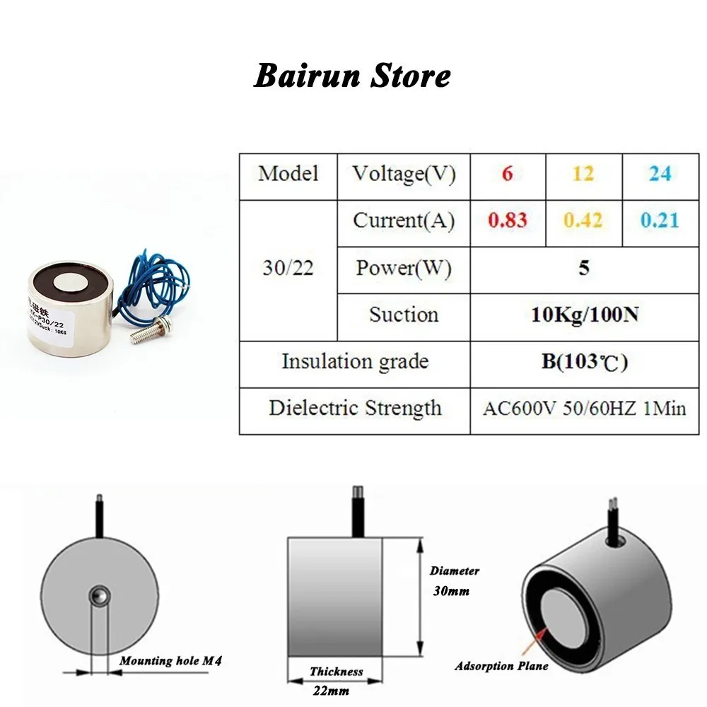 Электромагнит на присоске, 10 кг, 3022 В постоянного тока, 6 В, 24 В, 12 В