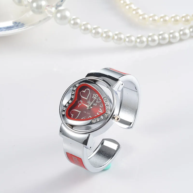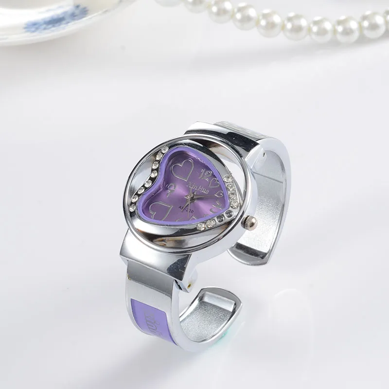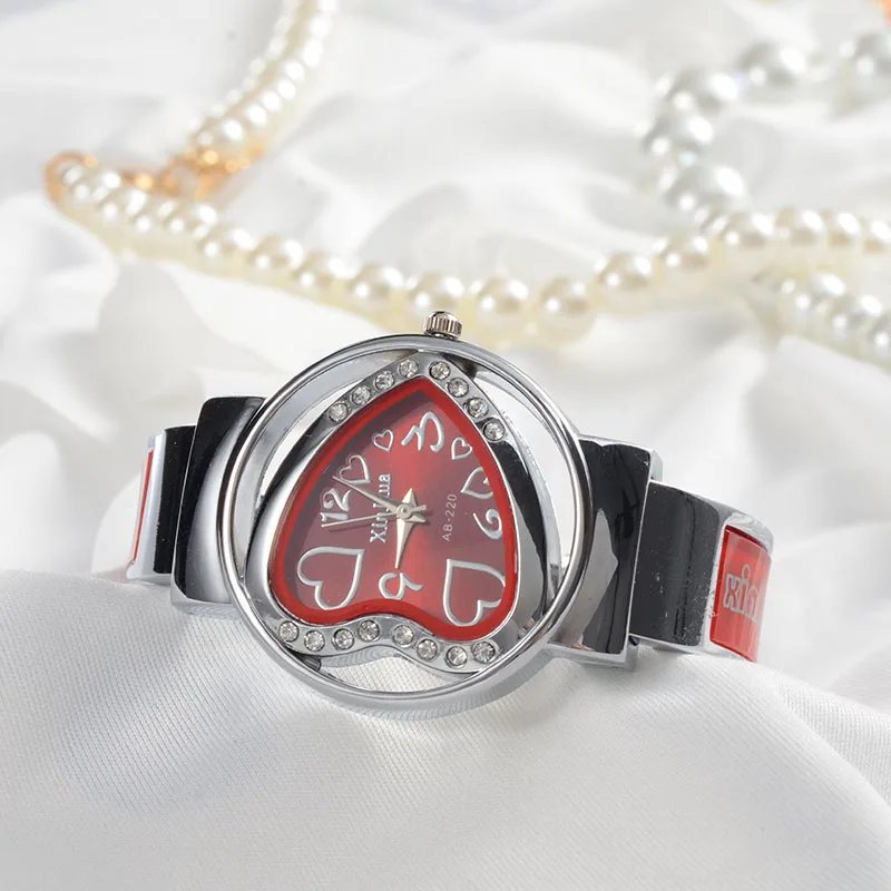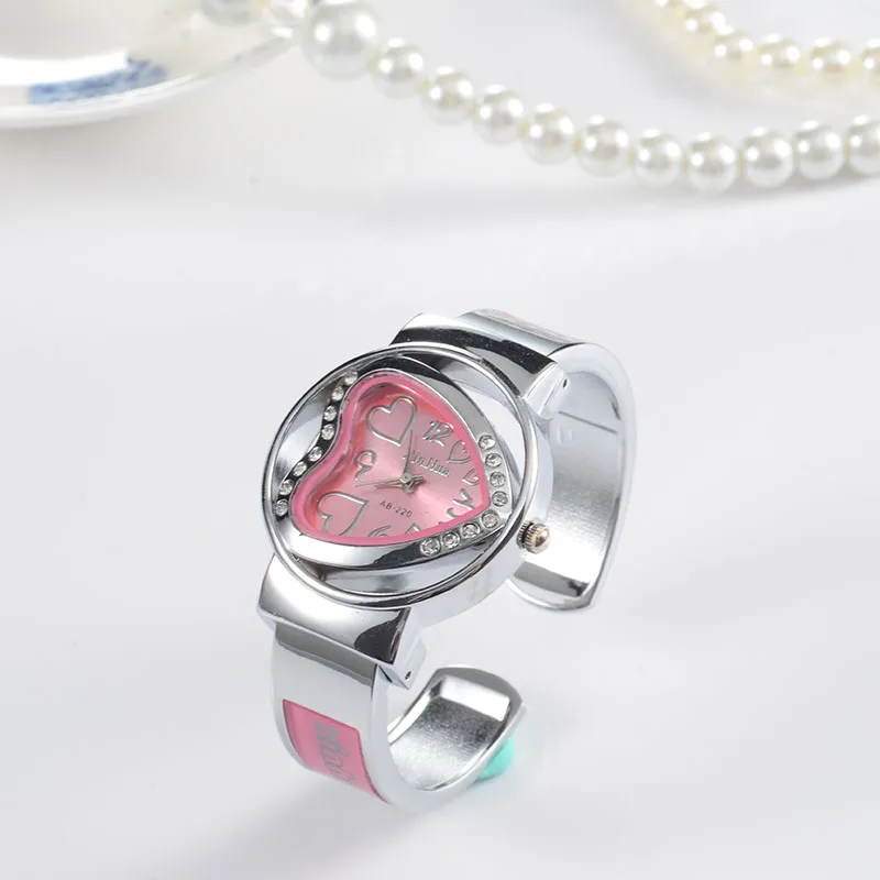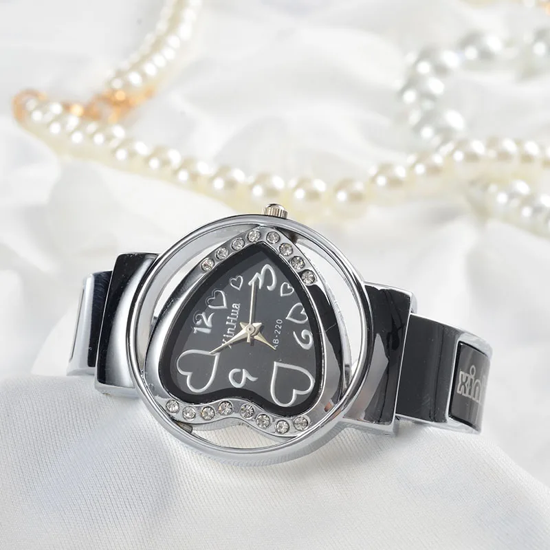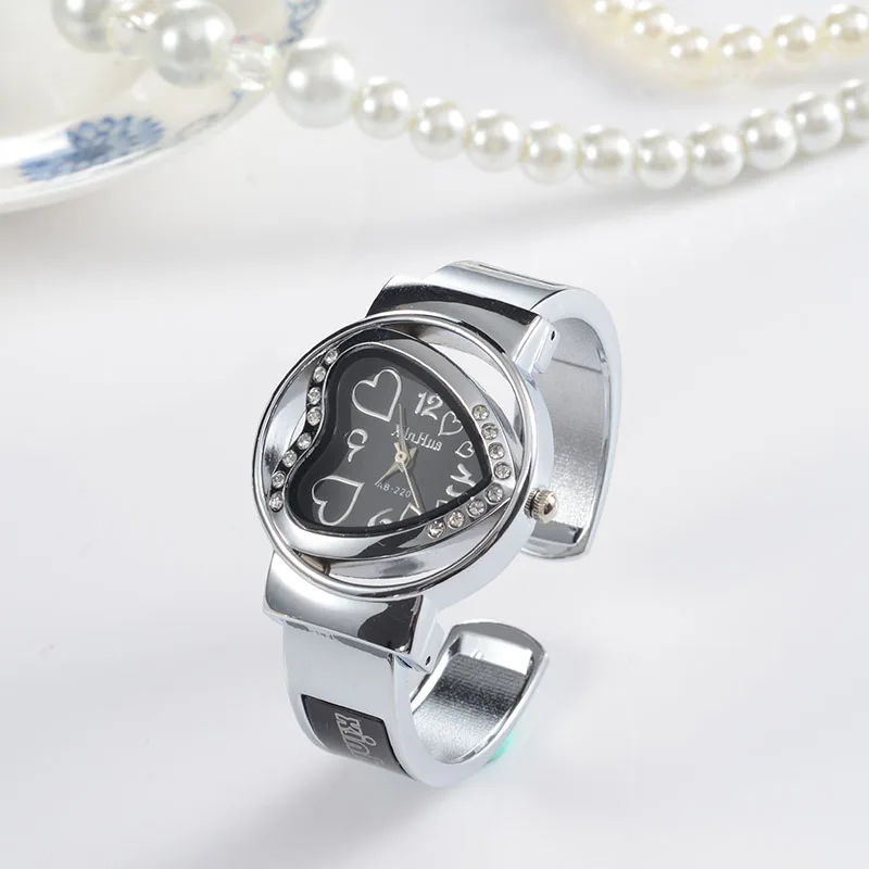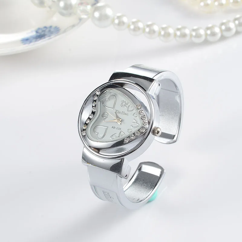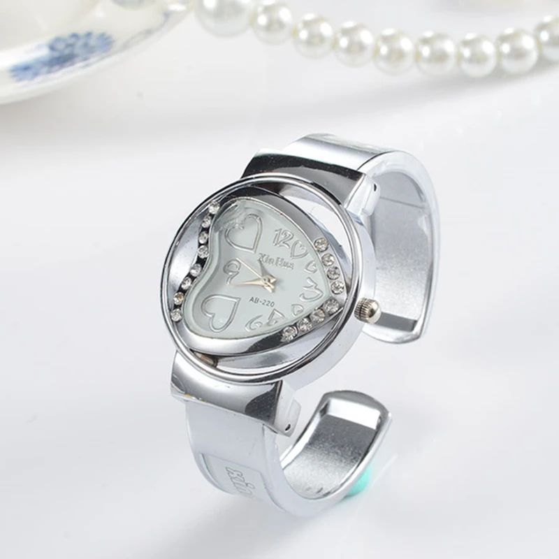 Часы наручные женские с сердечком, роскошные стразы, серебристые