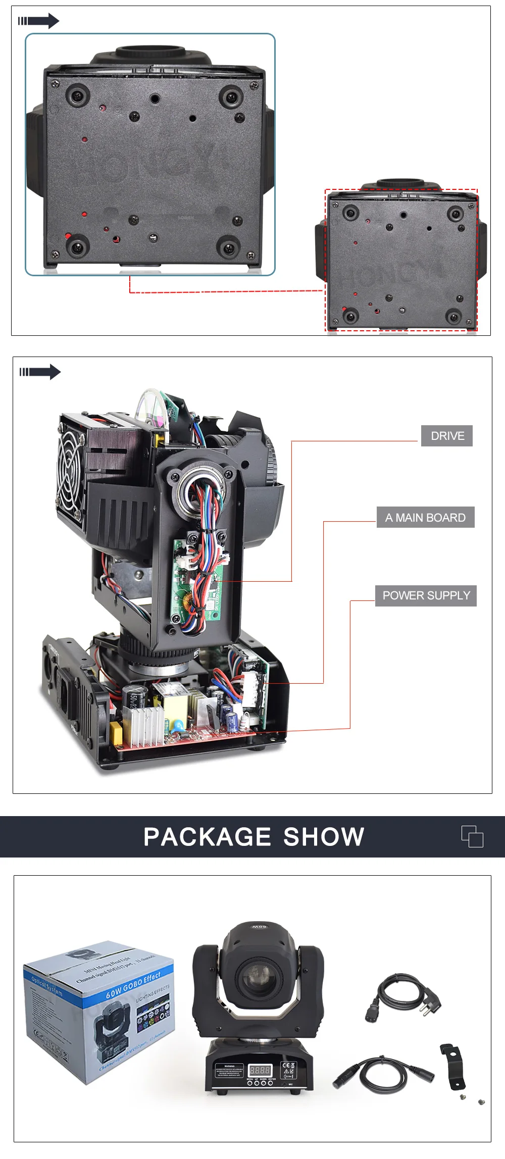 Светодиодный прожектор с движущейся головкой 60 Вт, музыкальный светильник для рождественской вечеринки, шоу, дискотеки, диджея, сценического освещения Dmx