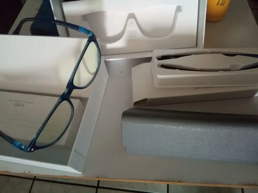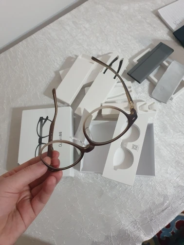 Прибыло через месяц, хорошо упаковано в коробку, все целое. Комплект, сами очки- оправа, лапки для носа 2 шт, дужки 2 пары, чехол, тряпочка и инструкция. Спасибо большое! Будем пользоваться.