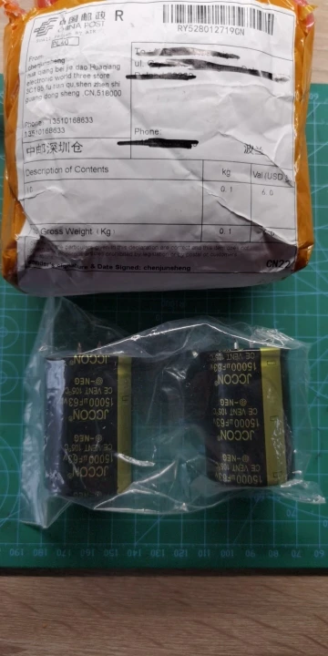 Посылка прибыла в 59 регион за 54 дня. Пол пути не отслеживалась. Ёмкость в пределах 14800- 14990. Только один кондер из пяти был ровно 15000. Установил в усилитель. Разница со старыми nihicon 63*15000 огромная. Новые по ёмкости не вывозят. На старых даже нет просадки по напряжению. Пришлось оставлять старые....