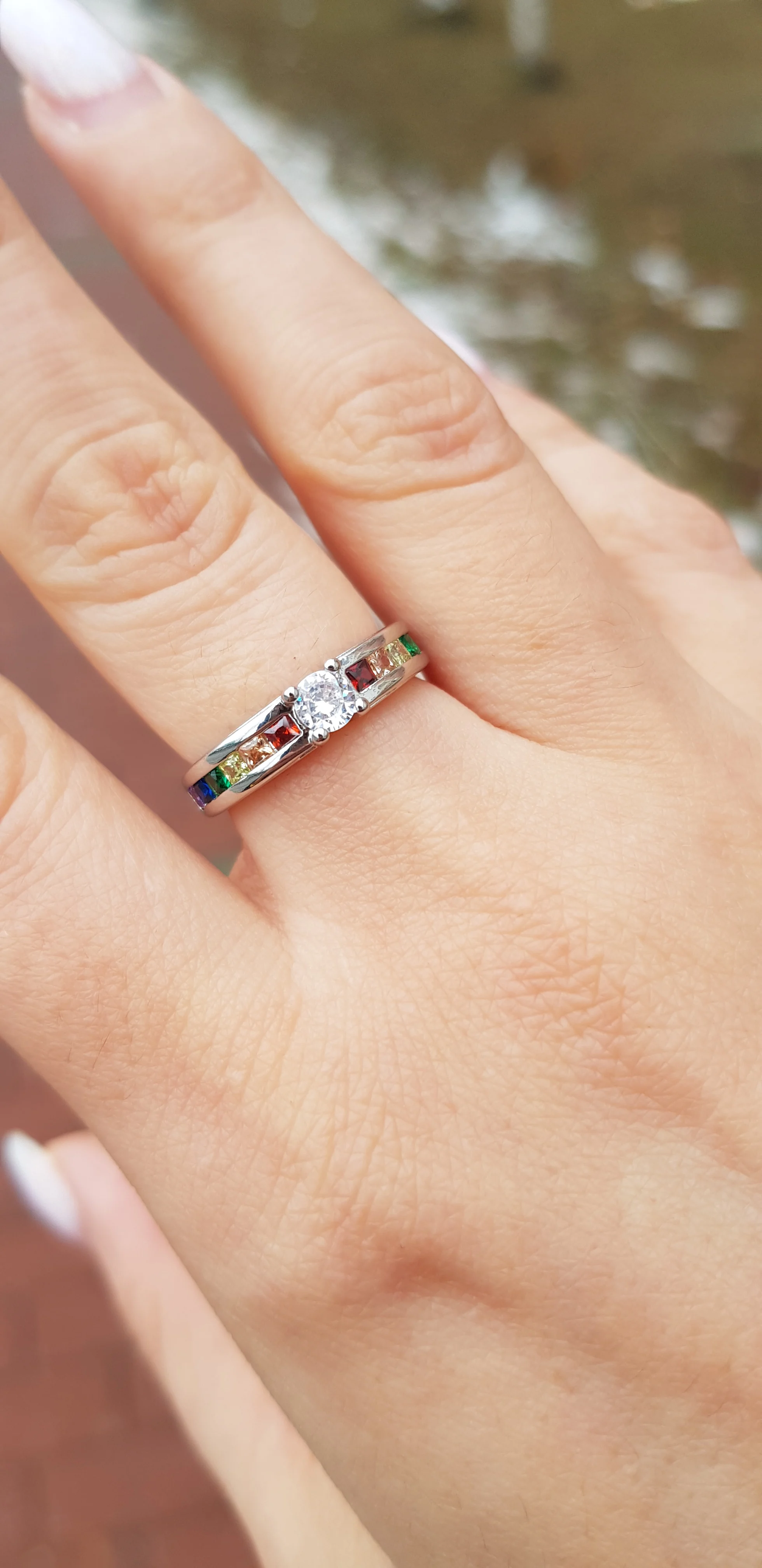 Кольцо женское из серебра 925 пробы разных цветов, с круглыми цветными кристаллами
