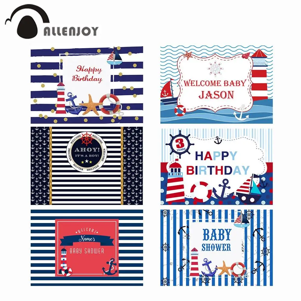 Фон Allenjoy для фотосъемки новорожденных с морской тематикой, в темно-синюю полоску