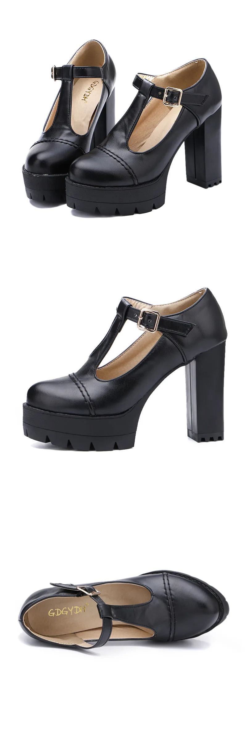 Женские туфли с Т-образной пряжкой Gdgydh, черные, туфли на толстом каблуке, на платформе, с круглым носком, большие размеры 43, на русском языке