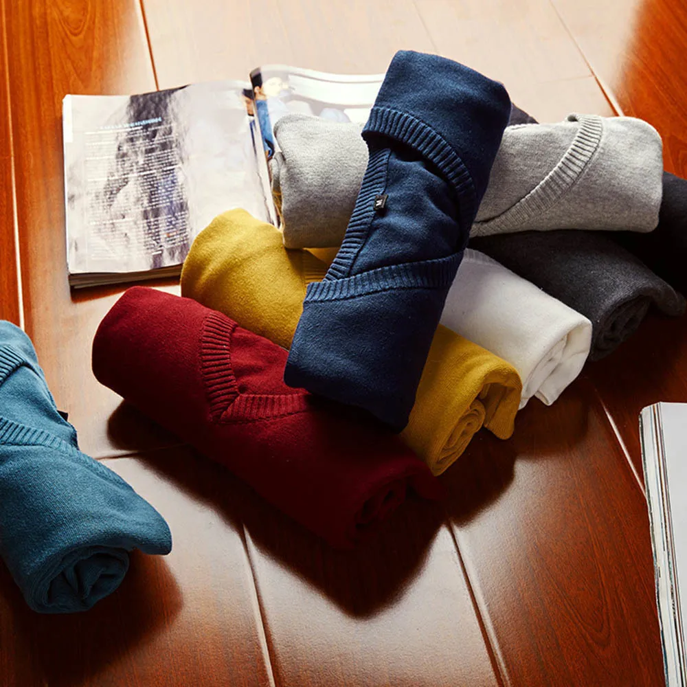 хлопковый свитер мужской пуловер с длинными рукавами мужской свитер кофты v-образным вырезом топы свободный однотонный крой трикотажная одежда 8 цветов Новинка