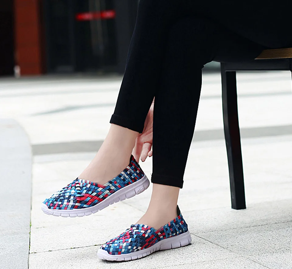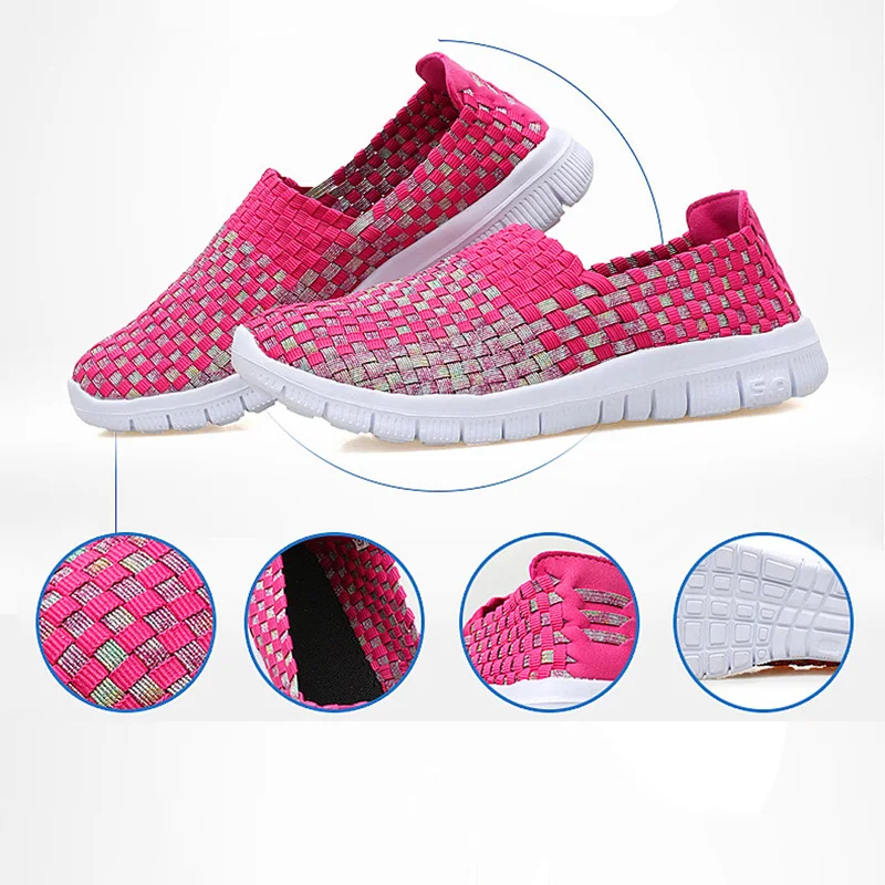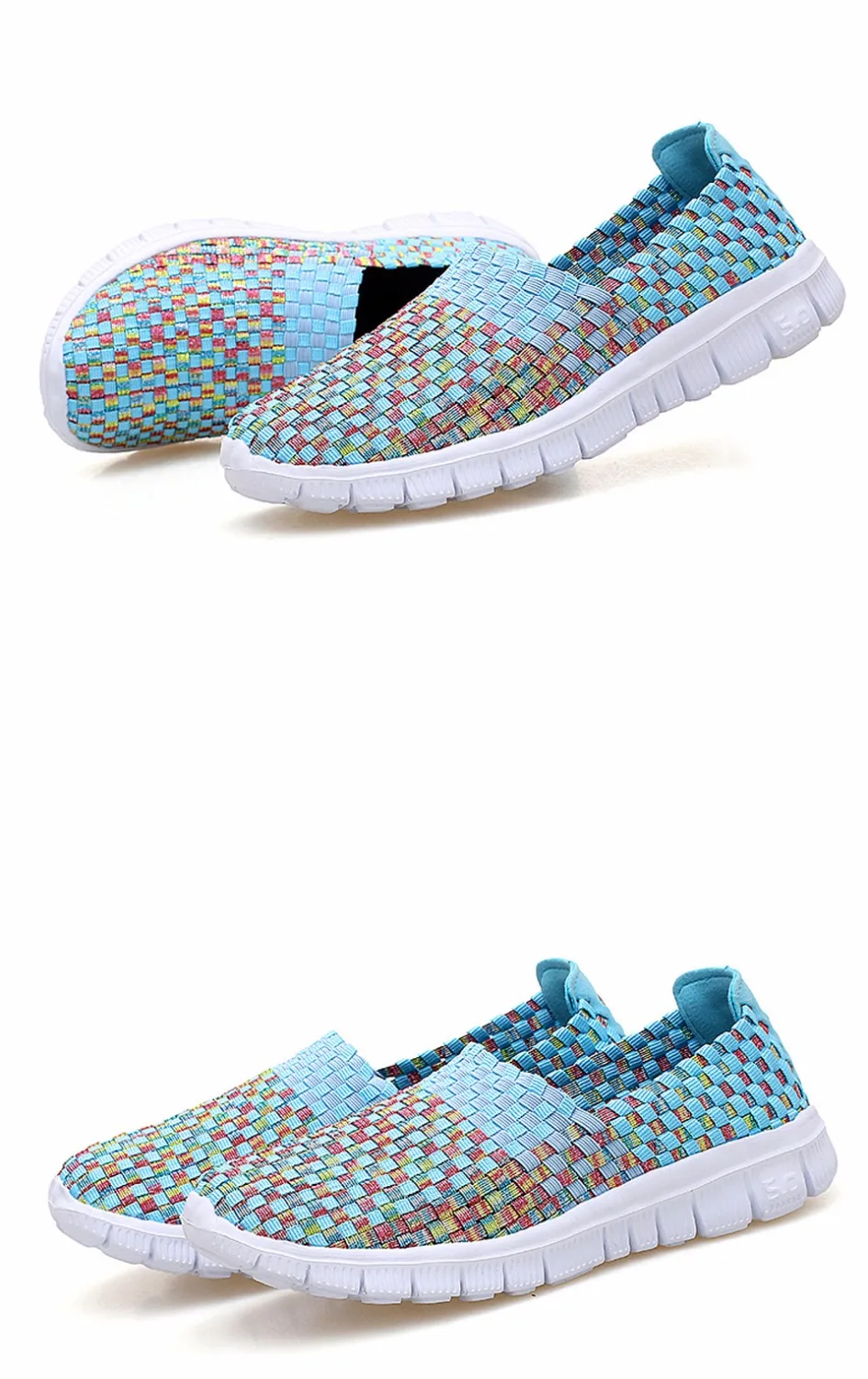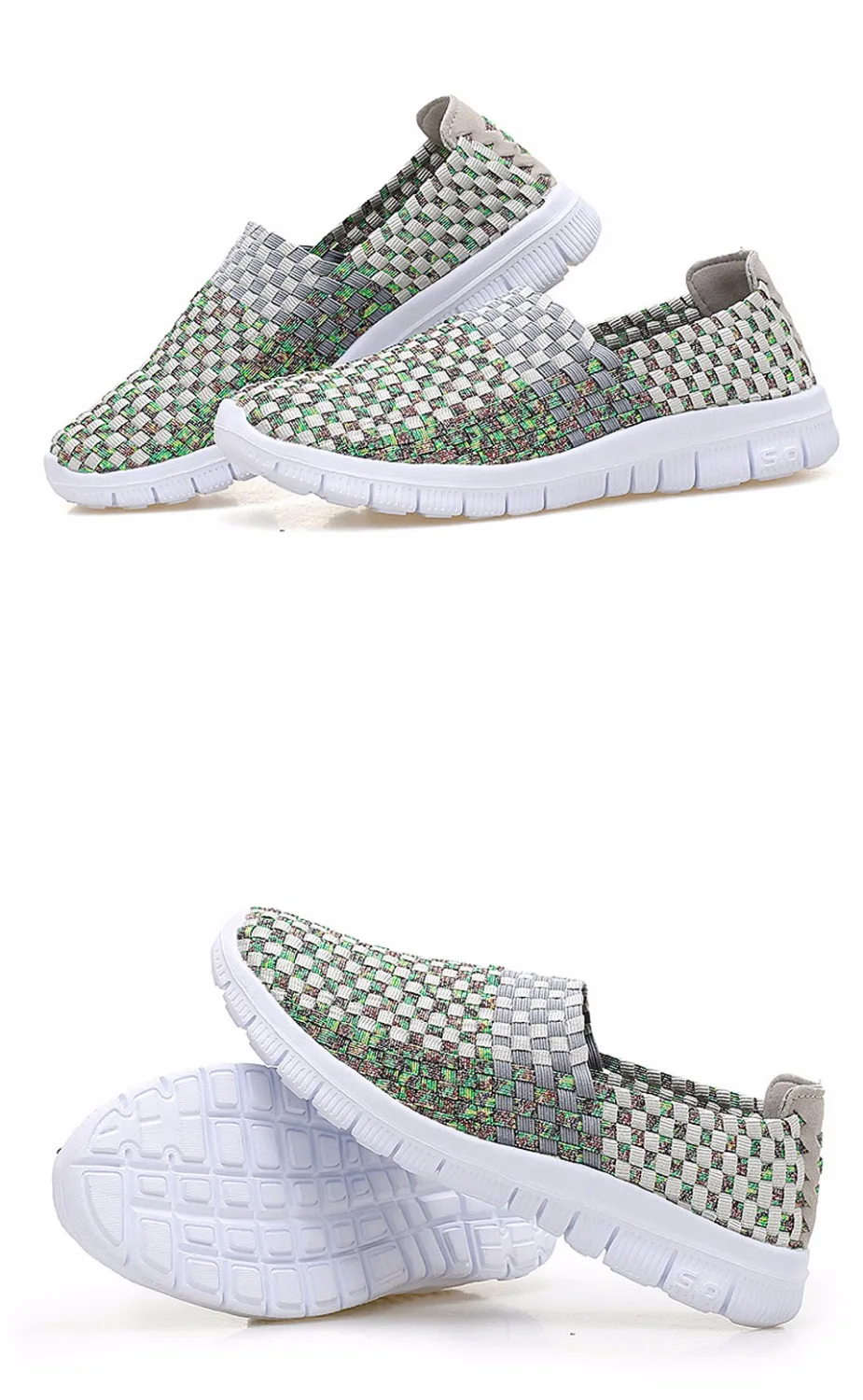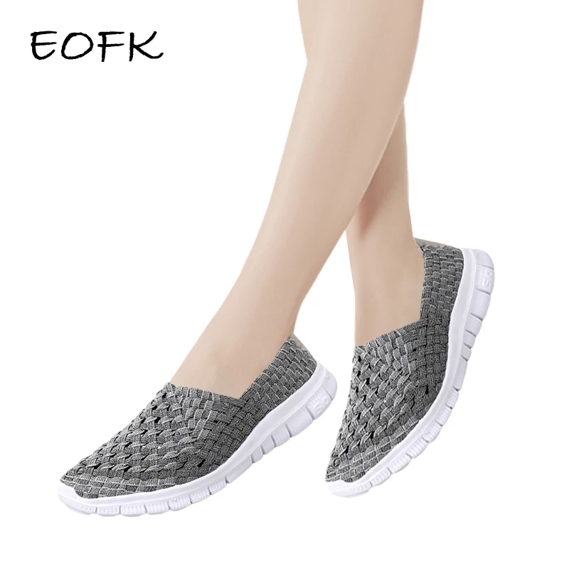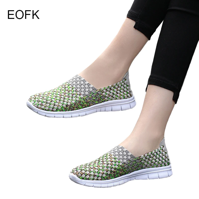 EOFK летняя ткань, нейлон, ручная работа, эластичные плоские слипоны, Блестящие Зеленые повседневные туфли