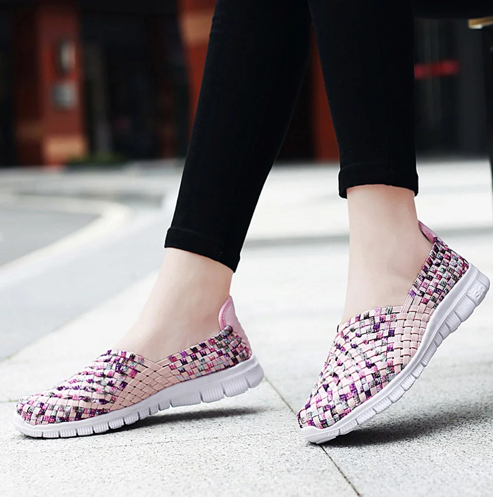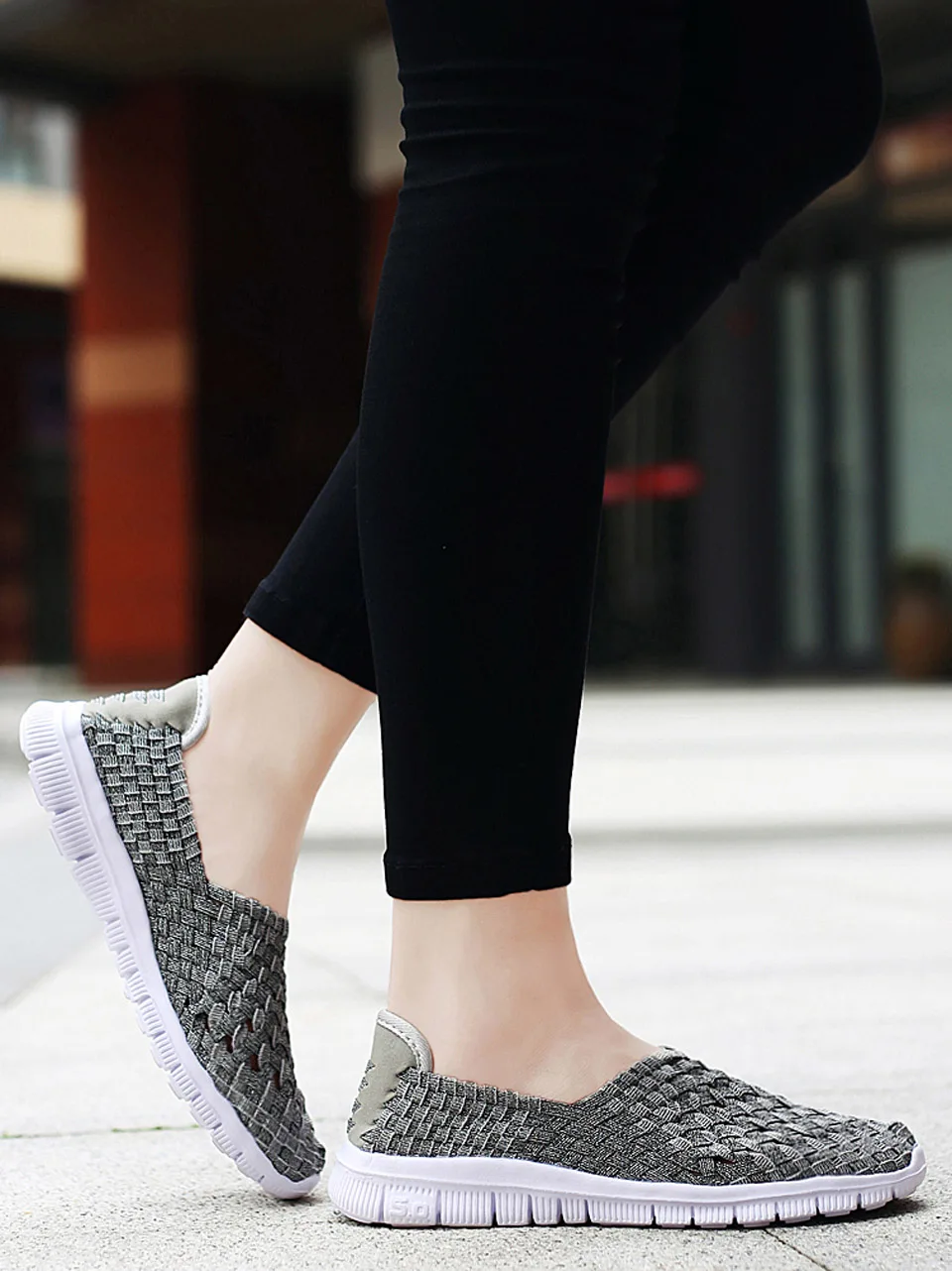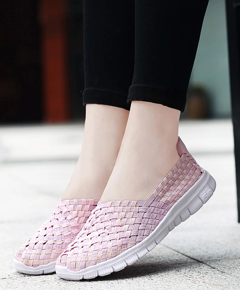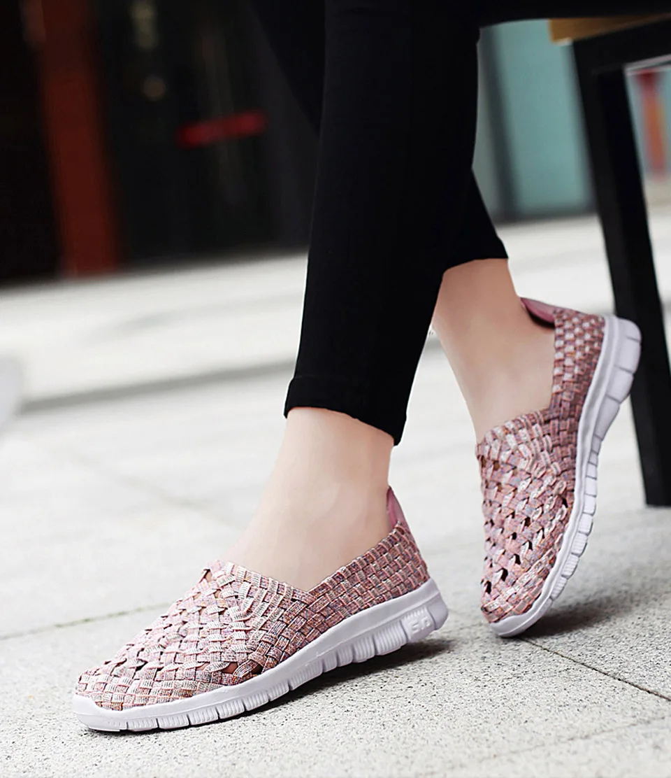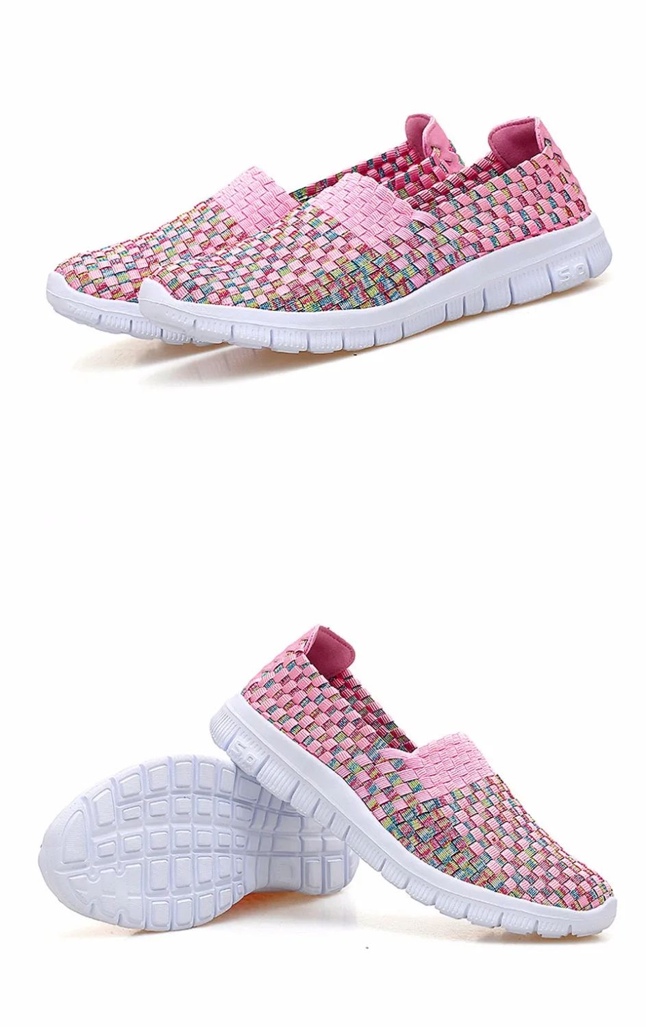 EOFK летняя ткань, нейлон, ручная работа, эластичные плоские слипоны, Блестящие Зеленые повседневные туфли
