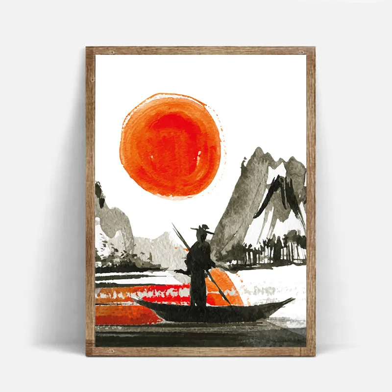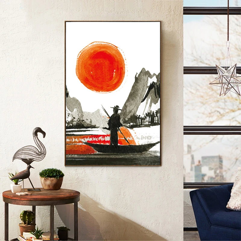 Художественный плакат на холсте с японскими чернилами, Настенная картина с акварелью для украшения гостиной, домашний декор