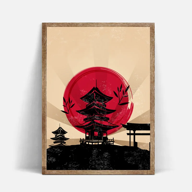 Картина на холсте, с абстрактным изображением японского пейзажа, ск...