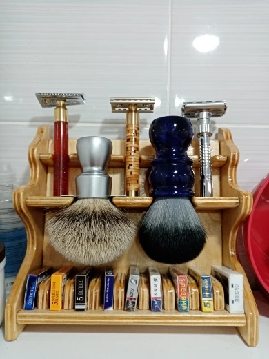 Достаточно жёсткий для массажа, но не грубый помазок. Подхомячивает пену (удерживает в себе значительные объёмы, не сразу отдавая на лицо), поэтому расход мыла будет повыше, чем с синтетикой. С кремами для бритья мало совместим из-за расхода (может всосать четверть тюбика и нагло улыбаться) — только с мылами. Попался экземпляр с незначительным скрытым деффектом (можно сказать, что это моя чрезмерная придирчивость) — продавец без пререканий предложил выслать других товаров на сумму даже чуть больше, чем стоил помазок. Удивительная клиентоориентированность! Очень приятно! Первые разы выпадали ворсинки, потом выпадение прекратилось. Порошок для бритья делаю из хозяйственного мыла без химических добавок, измельчая его на кофемолке и добавляя до 20% картофельного крахмала. Мыло без добавок трудно найти, но можно. Этот помазок рекомендую иметь в паре с синтетическим "волком" и чередовать. Пышный король — так его можно назвать. Не для каждого дня, а для ритуального выходного бритья. Спасибо!