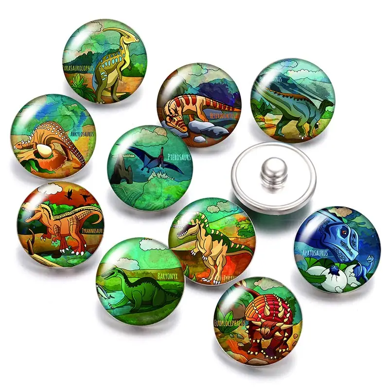 Свирепые динозавры 18 мм кнопки 10 шт. Смешанные Круглые фото стекло кабошон стиль для кнопки ювелирных изделий