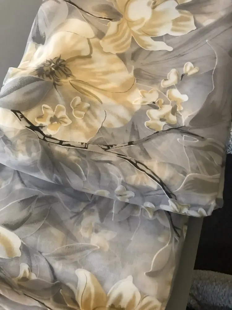 Тюль, расцветка шикарная, швы ровные. Соответствует описанию. Доставка быстрая. Спасибо продавцу за качественный товар.