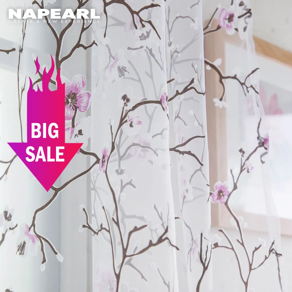 Ткани NAPEARL, 1 шт., цветочные тюлевые занавески, современные, фиолетовые, домашний текстиль, для кухни, короткие, для спальни, окна