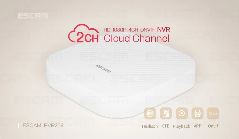 Сетевой видеорегистратор ESCAM PVR204 1080P 4 + 2 канала ONVIF с 2-канальным облачным каналом для системы IP-камер