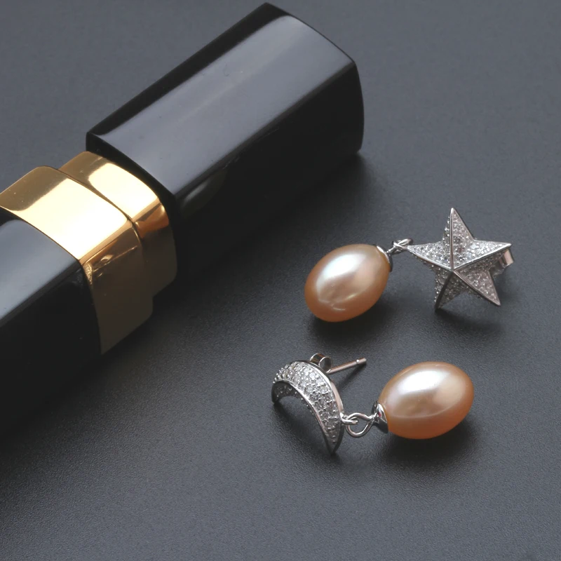 Настоящее серебро 925 пробы Серьги из натурального пресноводного жемчуга, луна и звезды темперамент элегантные серьги с жемчугом для очаровательных женщин лучшие подарки