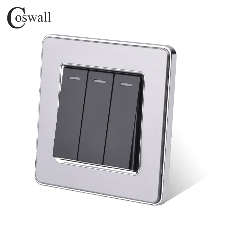 Coswall 3 Gang 1 Way роскошный светильник, настенный выключатель, панель из нержавеющей стали, AC 110 ~ 250 В