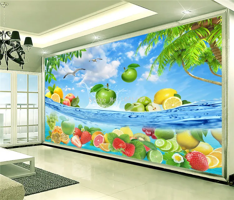 HD фруктовые морской воды, свежая летняя фотообои, 3D настенная фотообои, фруктовый магазин, ресторан, кухонный фон, Настенный декор