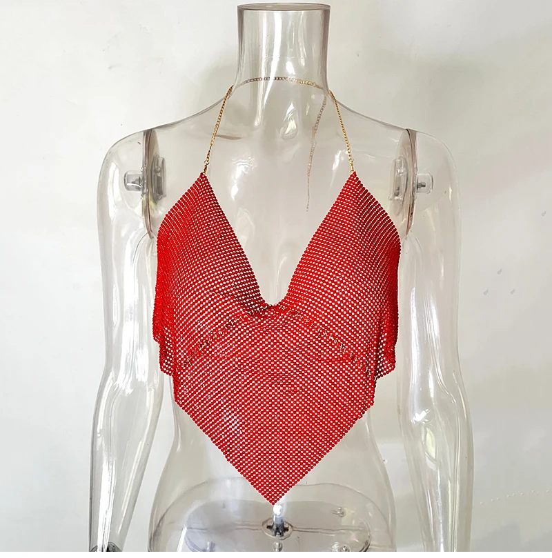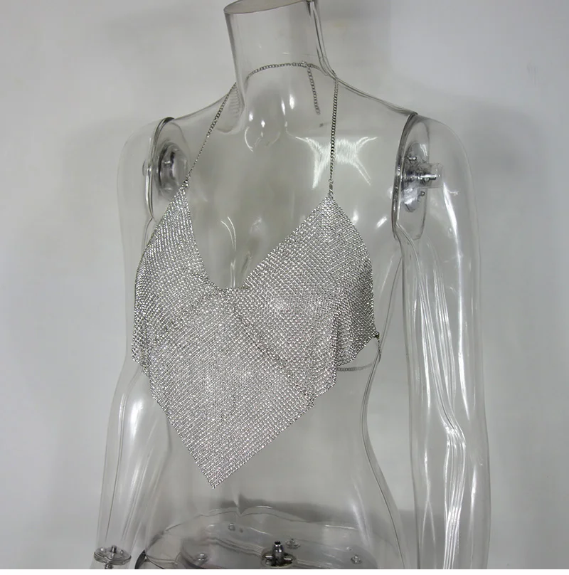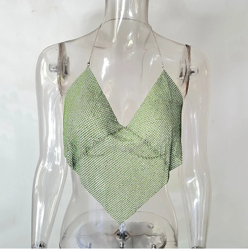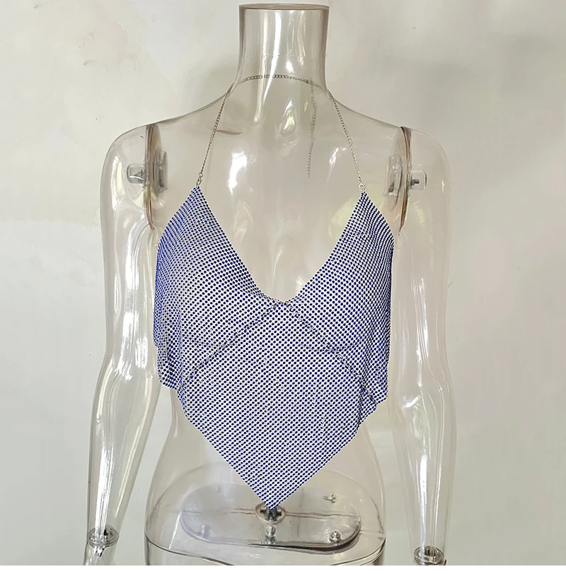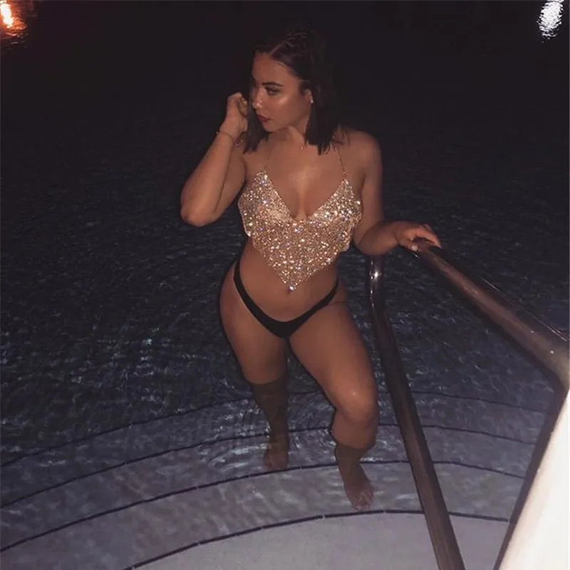 Женский топ с треугольными бриллиантами GACVGA, летний блестящий топ на бретельках с открытой спиной, бюстгальтер без косточек для ночного клуба, 2021